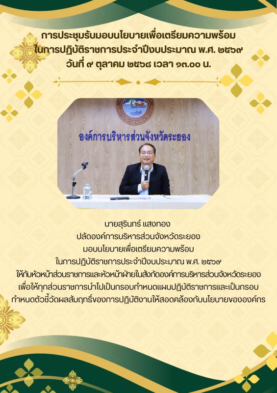 การประชุมรับมอบนโยบายเพื่อเตรียมความพร้อมในการปฏิบัติราชการประจำปีงบประมาณ พ.ศ. 2569 วันที่ 9 ตุลาคม 2568 เวลา 13.00 น. 9 ตุลาคม 2568 204