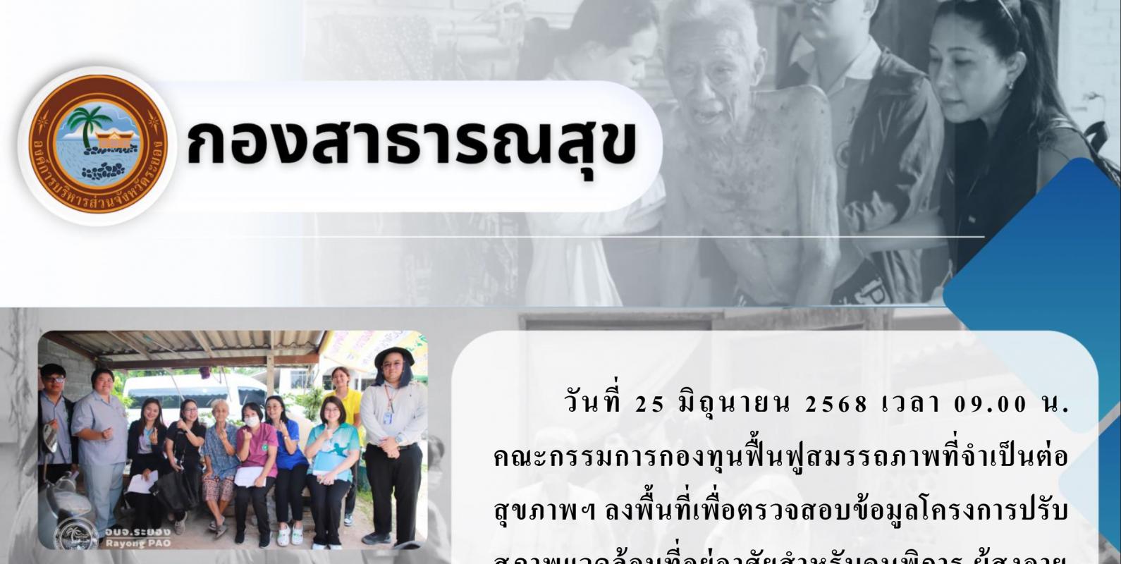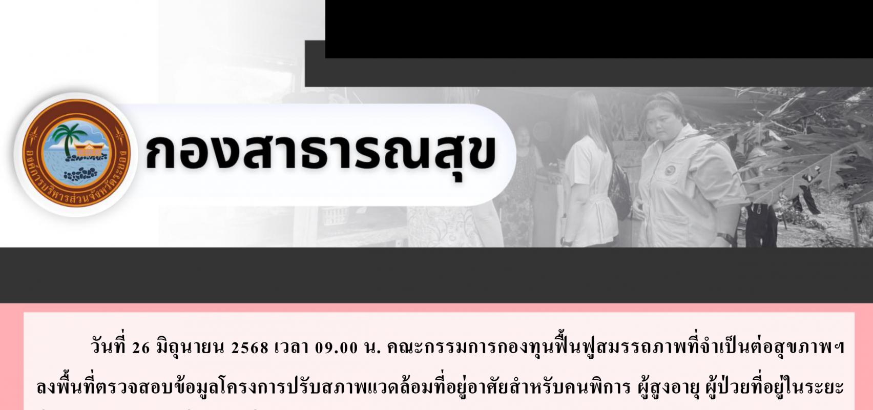 กองทุนฟื้นฟูสมรรถภาพที่จำเป็นต่อสุขภาพจังหวัดระยอง ลงพื้นที่ตรวจสอบข้อมูลโครงการปรับสภาพที่อยู่อาศัยสำหรับคนพิการและผู้สูงอายุฯ ในเขต อบต.วังหว้า อบต.ตะพง และทต.บ้านเพ 26 มิถุนายน 2568 358