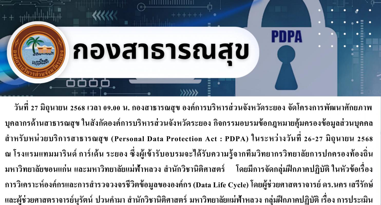 โครงการพัฒนาศักยภาพบุคลากรด้านสาธารณสุข กิจกรรมอบรมข้อกฎหมายคุ้มครองข้อมูลส่วนบุคคลสำหรับหน่วยบริการสาธารณสุข (Personal Data Protection Act : PDPA) 26 มิถุนายน 2568 373