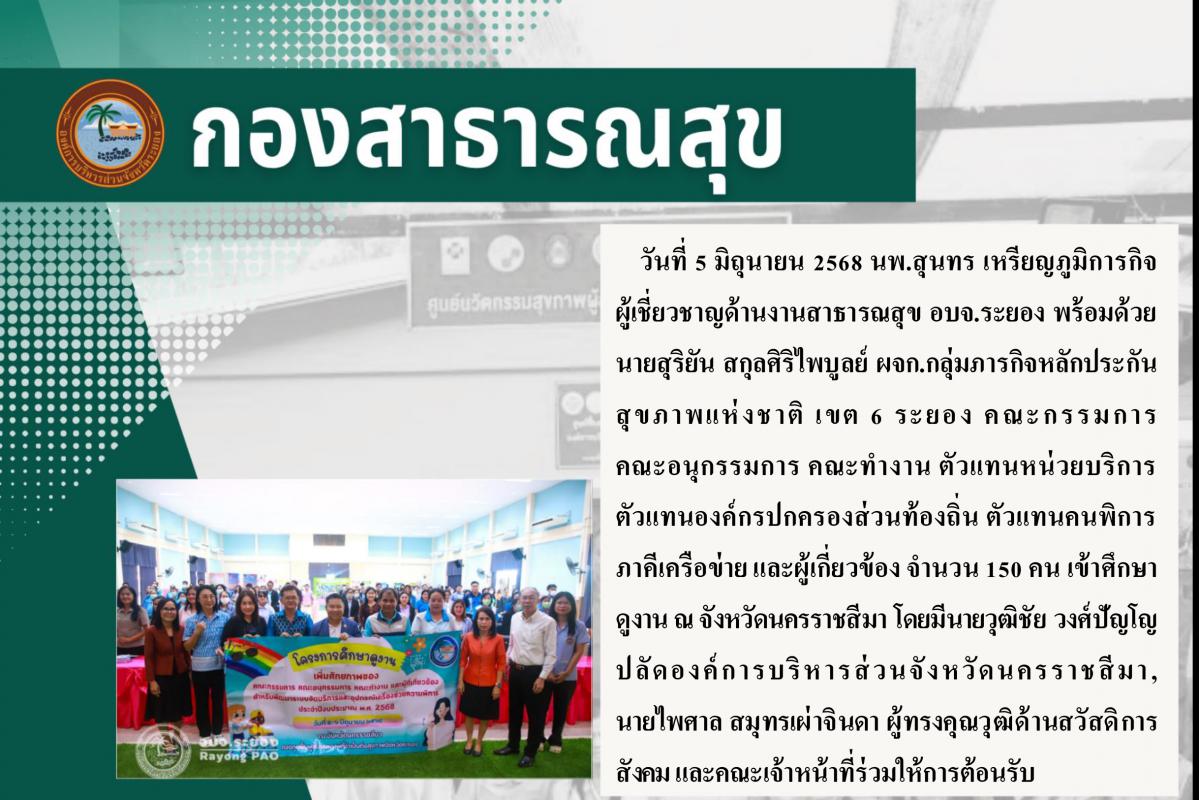 กองทุนฟื้นฟูสมรรถภาพที่จำเป็นต่อสุขภาพจังหวัดระยอง เข้าศึกษาดูงานเพื่อเพิ่มศักยภาพในการทำงานของคณะกรรมการ คณะอนุกรรมการ คณะทำงาน และผู้ที่เกี่ยวข้อง สำหรับพัฒนาระบบจัดบริการและอุปกรณ์เครื่องช่วยความพิการ ปีงบประมาณ 2568 6 มิถุนายน 2568 320