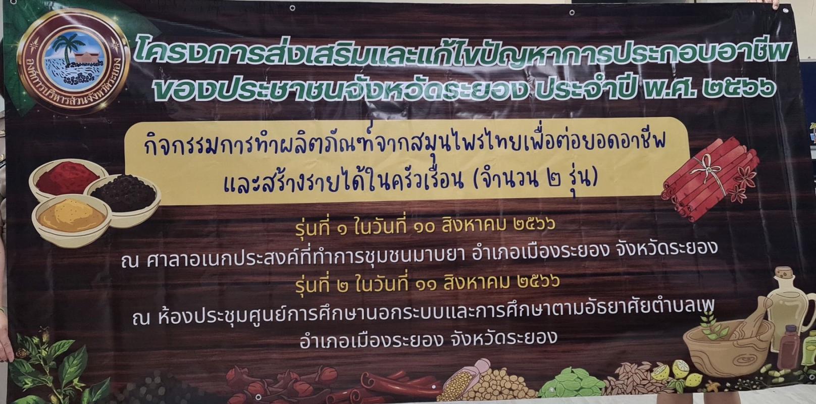 ขอเชิญเข้าร่วมโครงการส่งเสริมและแก้ไขปัญหาการประกอบอาชีพของประชาชนจ.ระยอง ประจำปี พ.ศ.2566 "กิจกรรมการทำผลิตภัณฑ์จากสมุนไพรไทยเพื่อต่อยอดอาชีพและสร้างรายได้ในครัวเรือน(จำนวน 2 รุ่น)" 1 สิงหาคม 2566 920