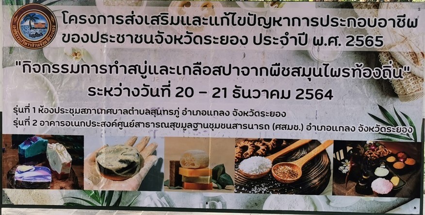 ขอเชิญเข้าร่วมโครงการส่งเสริมและแก้ไขปัญหาการประกอบอาชีพของประชาชนจ.ระยองประจำปีพ.ศ.2565 "กิจกรรมการทำสบู่และเกลือจากสปาจากพืชสมุนไพรท้องถิ่น" 8 ธันวาคม 2564 621
