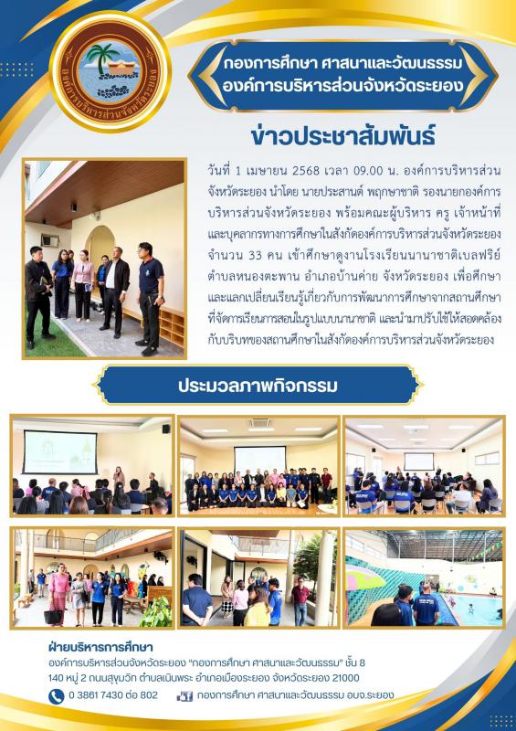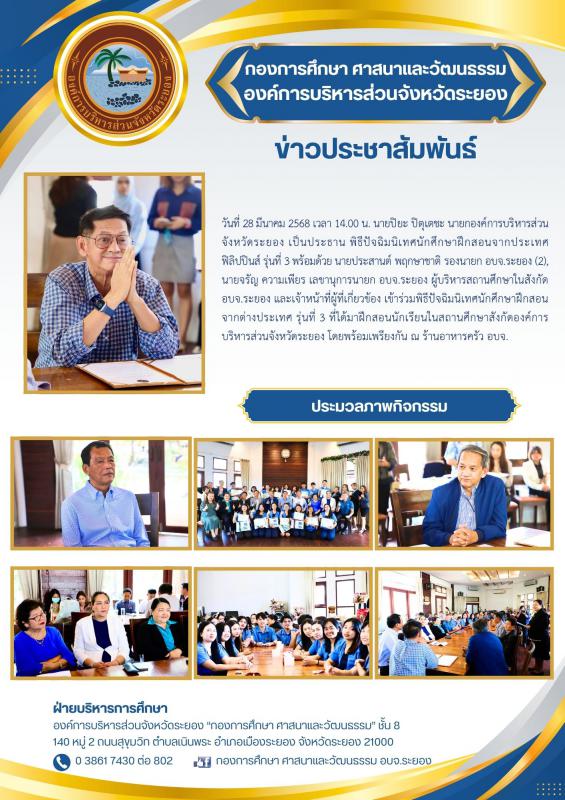 อบจ.ระยอง โดย กองการศึกษา ศาสนาและวัฒนธรรม ขอเชิญชวนประชาชนและนักท่องเที่ยวได้ร่วมสืบสานวัฒนธรรมประเพณีสงกรานต์ 18 มีนาคม 2568 642