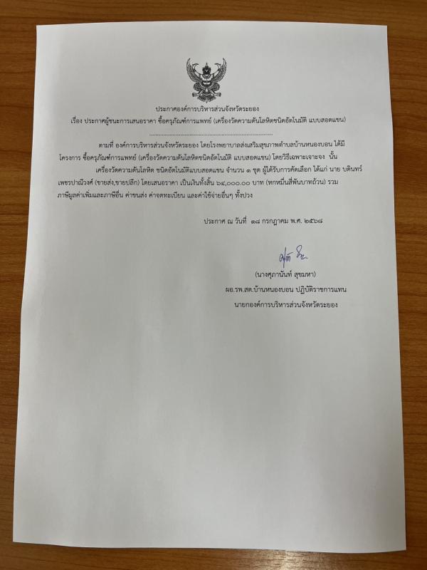 ประกาศผู้ชนะการเสนอราคา ซื้อครุภัณฑ์การแพทย์ (เครื่องวัดความดันโลหิตชนิดอัตโนมัติ) 18 กรกฏาคม 2568 319