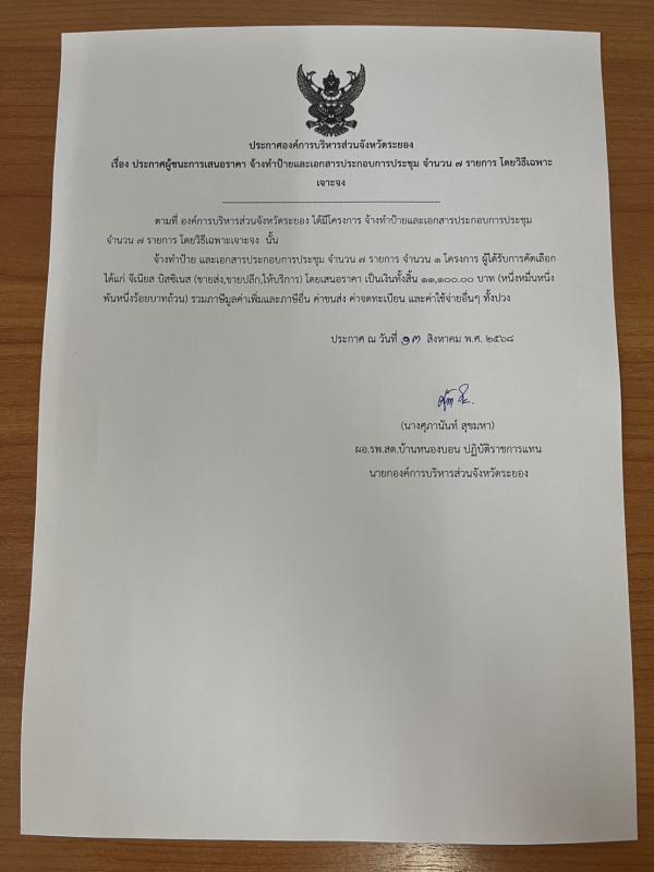 ประกาศผู้ชนะการเสนอราคา จ้างทำป้ายและเอกสารประกอบการประชุม จำนวน 7 รายการ โดยวิธีเฉพาะเจาะจง 13 สิงหาคม 2568 242