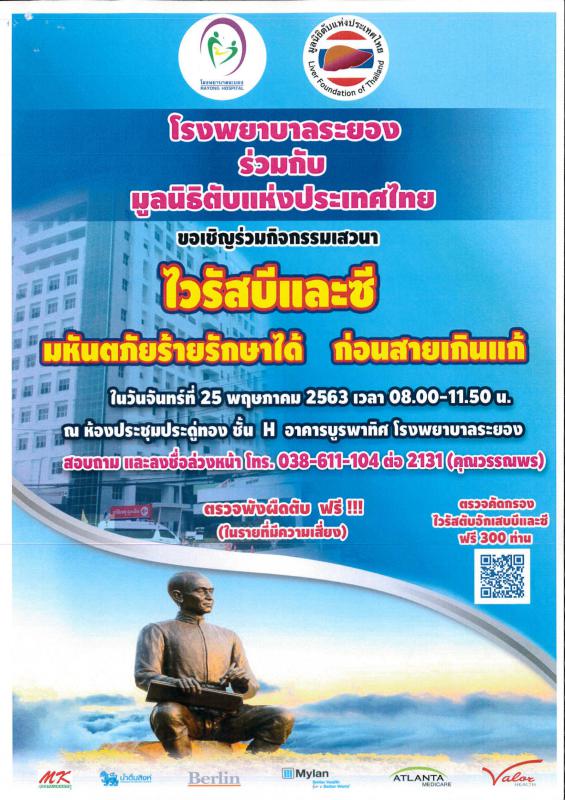 ขอเชิญเข้ารับฟังเสวนาตามโครงการให้ความรู้ไวรัสตับอักเสบบีและซี มหันตภัยร้ายรักษาได้ก่อนสายเกินแก้ ครั้งที่ ๑๘ พร้อมตรวจไวรัสตับอักเสบบีและไวรัสตับอักเสบซีฟรี