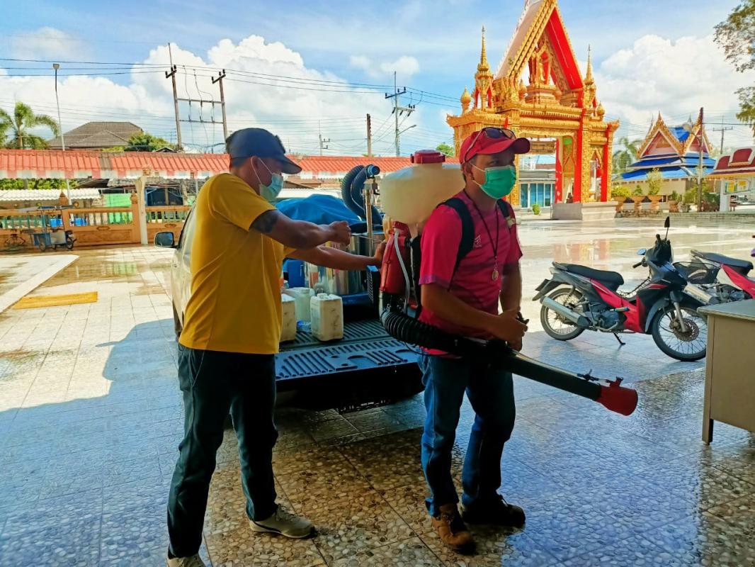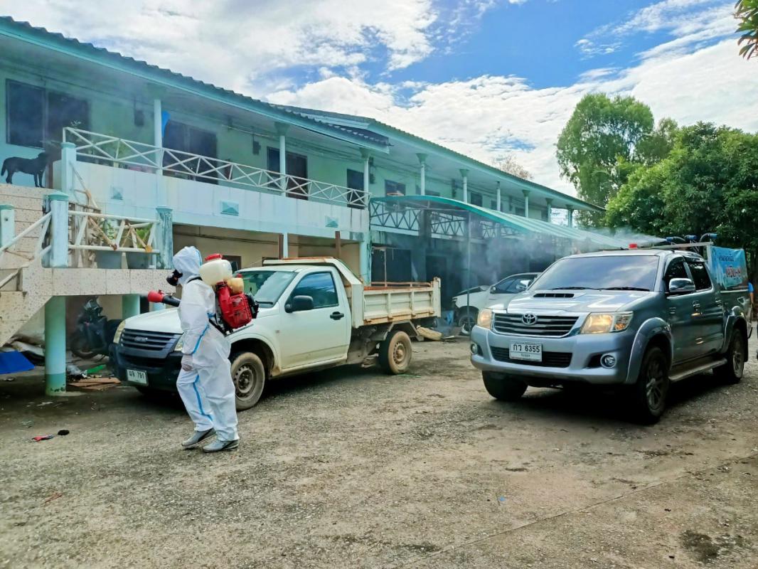 ฉีดพ่นน้ำยาฆ่าเชื้อโดยฝ่ายป้องกันและบรรเทาสาธารณภัย สำนักปลัดองค์การบริหารส่วนจังหวัด
