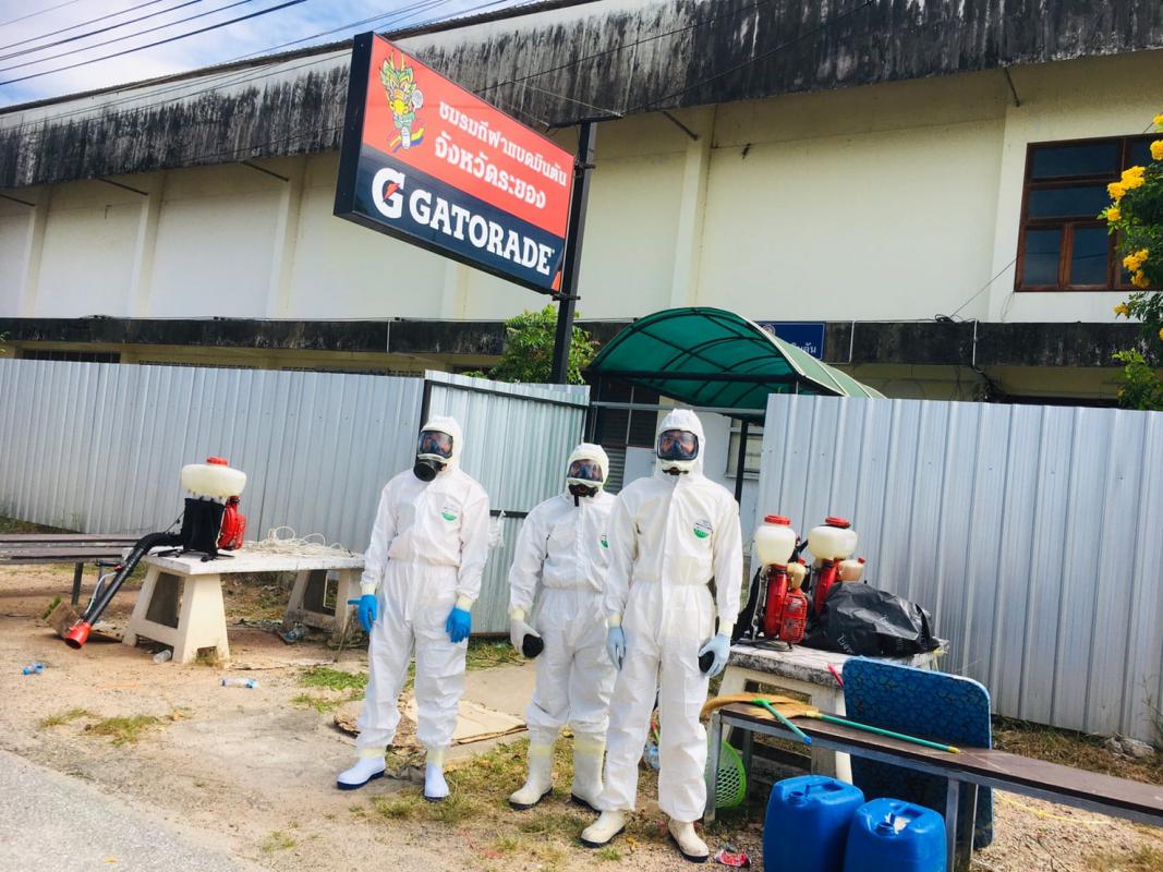 ฝ่ายป้องกันและบรรเทาสาธารณภัย อบจ.ระยอง ได้ออกทำการฉีดพ่นน้ำยาฆ่าเชื้อ