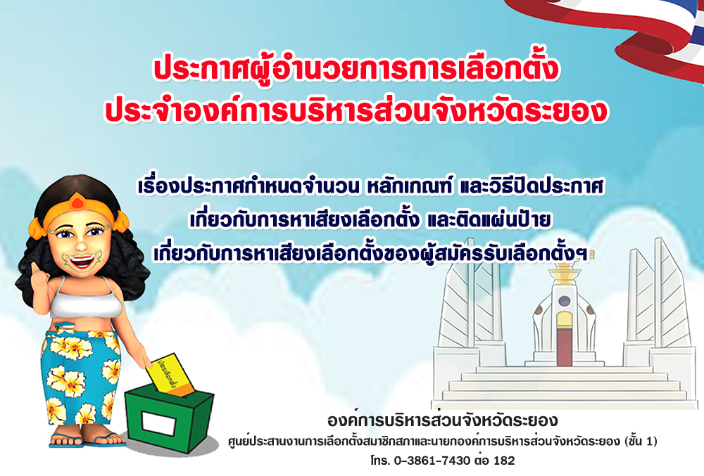 ประกาศผู้อำนวยการการเลือกตั้งประจำจังหวัดระยอง เรื่องกำหนดค่าใช้จ่ายในการเลือกตั้งของผู้สมัครสมาชิกสภาท้องถิ่นหรือผู้บริหารท้องถิ่น