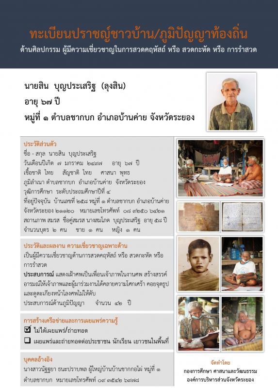 ทะเบียนปราชญ์ชาวบ้าน/ภูมิปัญญาท้องถิ่น ด้านศิลปกรรม ผู้มีความเชี่ยงชาญในด้านการสวดคฤหัสถ์