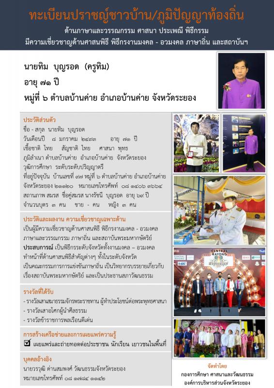ทะเบียนปราชญ์ชาวบ้าน/ภูมิปัญญาท้องถิ่น พ.ศ.2564