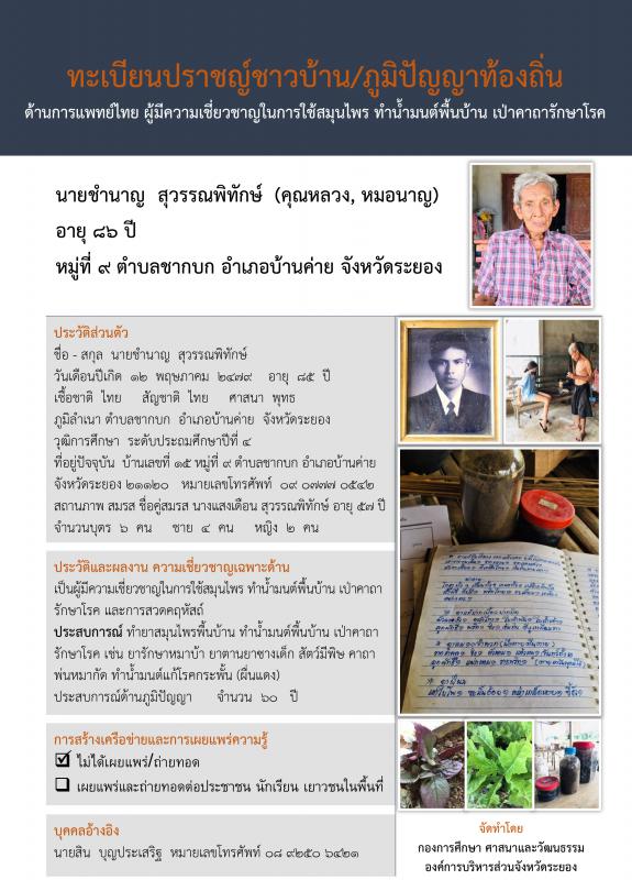 ทะเบียนปราชญ์ชาวบ้าน/ภูมิปัญญาท้องถิ่น ด้านศิลปกรรม ผู้มีความเชี่ยงชาญในด้านแพทย์ไทย
