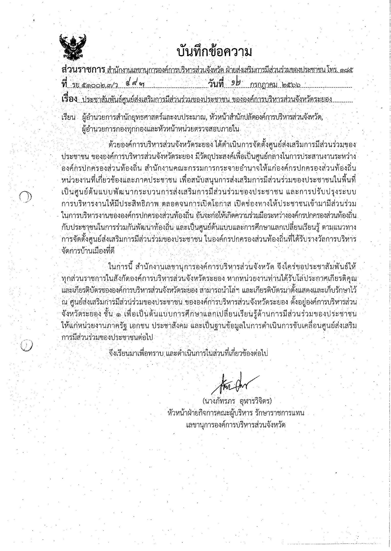 ประชาสัมพันธ์ศูนย์ส่งเสริมการมีส่วนร่วมของประชาชน ขององค์การบริหารส่วนจังหวัดระยอง