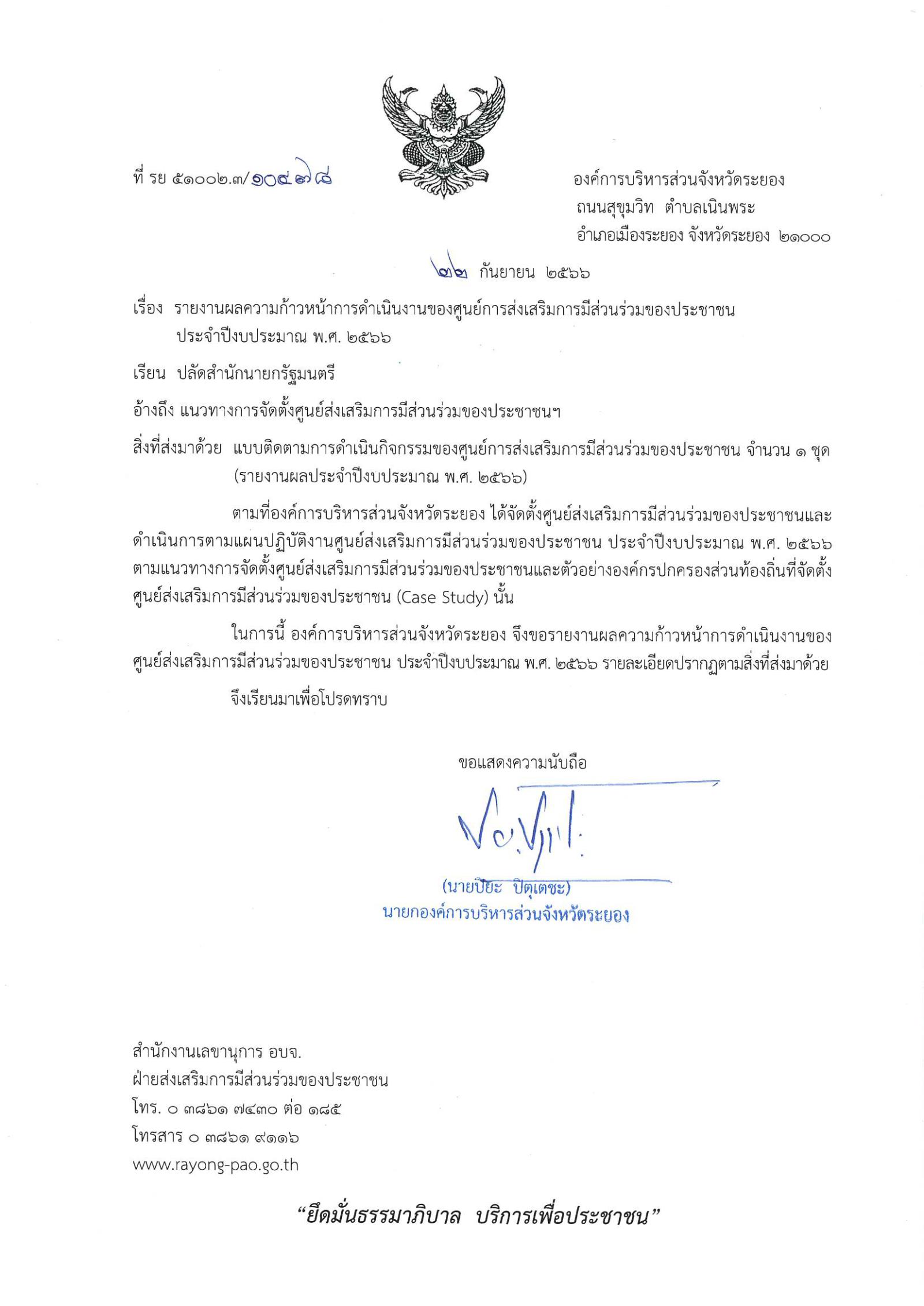 รายงานผลความก้าวหน้าการดำเนินงานของศูนย์การส่งเสริมการมีส่วนร่วมของประชาชน ประจำปีงบประมาณ พ.ศ. ๒๕๖๖