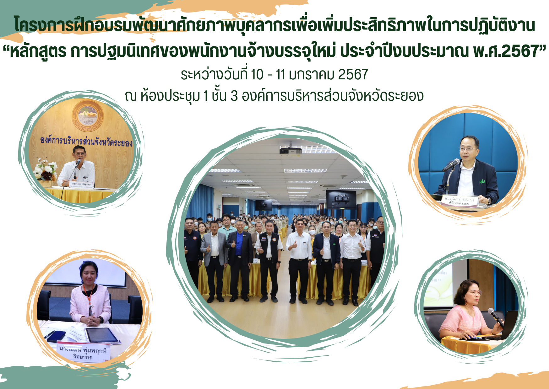 โครงการฝึกอบรมพัฒนาศักยภาพบุคลากรเพื่อเพิ่มประสิทธิภาพในการปฏิบัติงาน “หลักสูตร การปฐมนิเทศของพนักงานจ้างบรรจุใหม่ ประจำปีงบประมาณ พ.ศ.2567” ระหว่างวันที่ 10 - 11 มกราคม 2567 ณ ห้องประชุม 1 ชั้น 3 องค์การบริหารส่วนจังหวัดระยอง