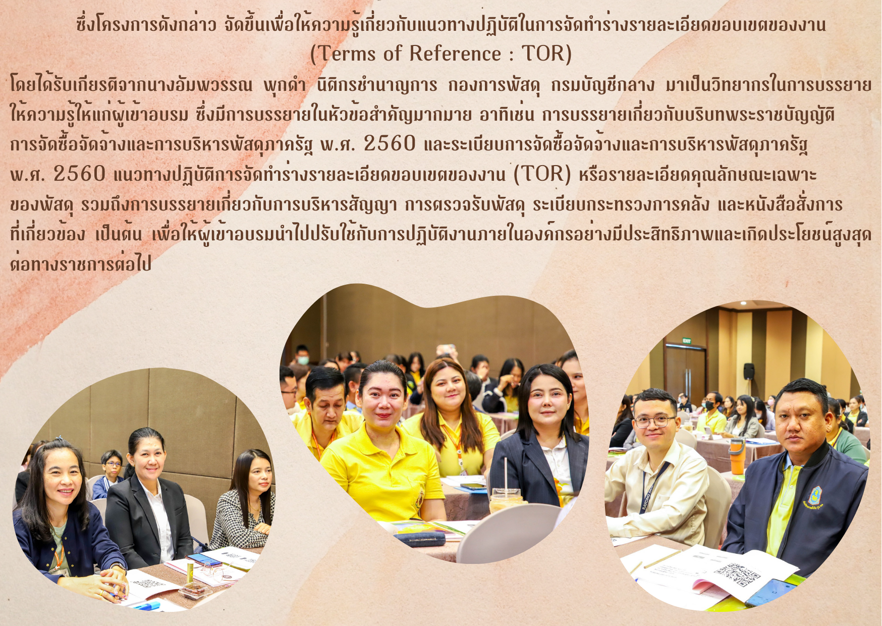 โครงการฝึกอบรมพัฒนาศักยภาพบุคลากรเพื่อเพิ่มประสิทธิภาพในการปฏิบัติงาน “หลักสูตร แนวทางปฏิบัติในการจัดทำร่างรายละเอียดขอบเขตของงาน (Terms of Reference : TOR)” วันที่ 26 กุมภาพันธ์ 2567