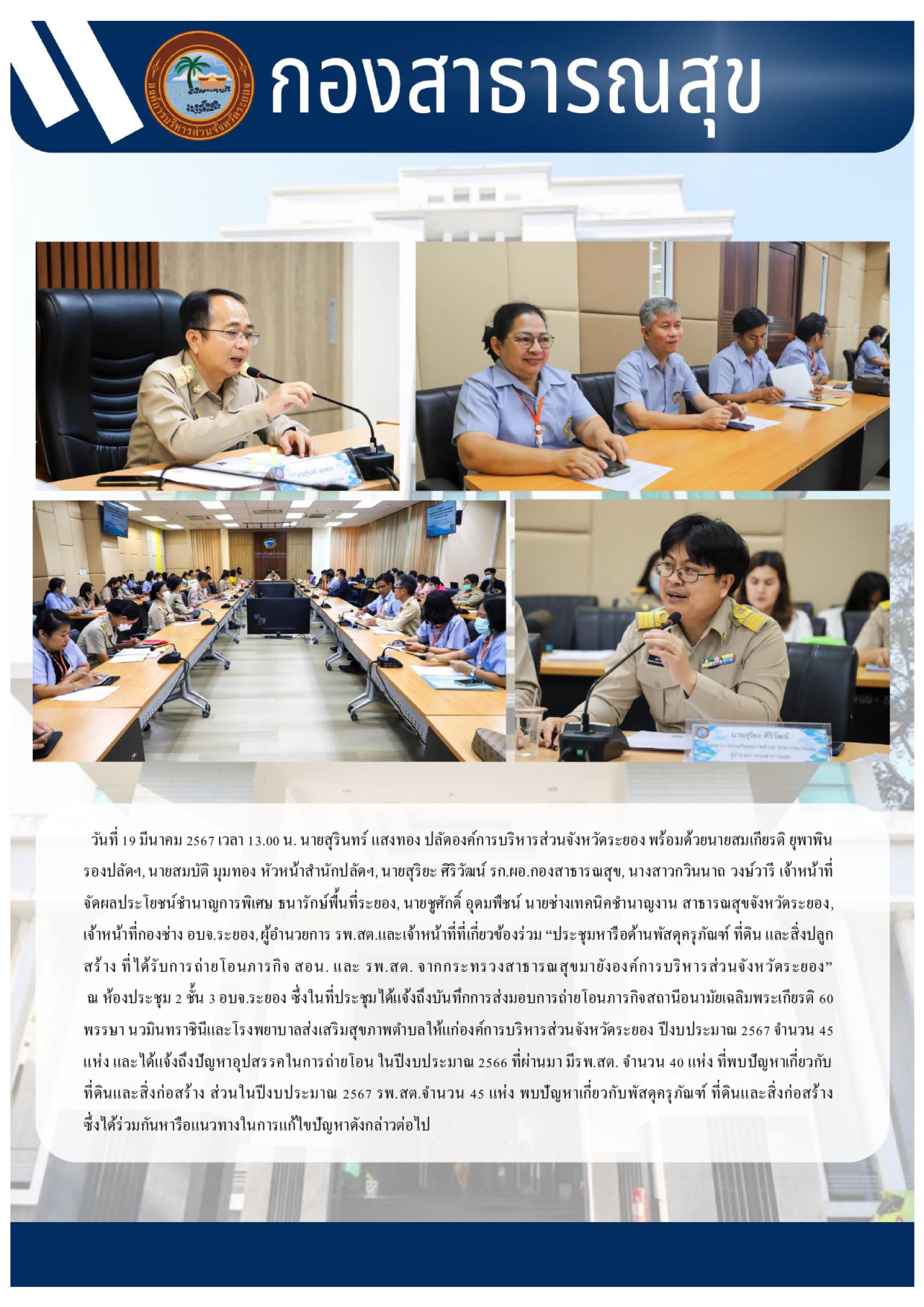 “รพ.สต.ในสังกัด อบจ.ระยอง หารือแนวทางแก้ไขปัญหาการถ่ายโอนพัสดุครุภัณฑ์ฯจากกระทรวงสาธารณสุข”