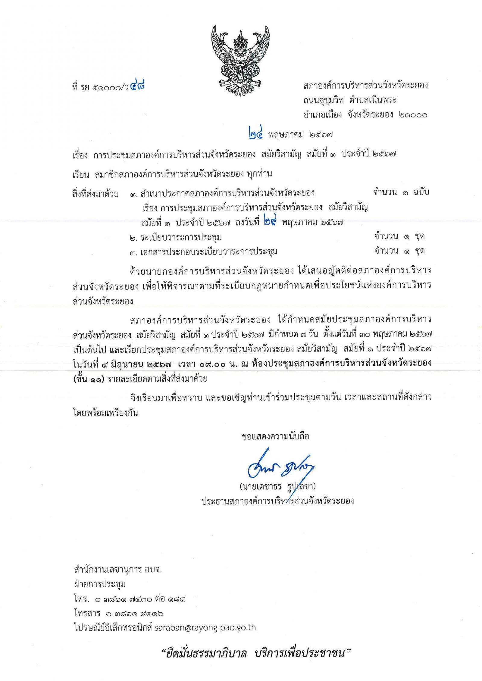 นัดประชุมสภาองค์การบริหารส่วนจังหวัดระยอง สมัยวิสามัญ สมัยที่ ๑ ประจำปี ๒๕๖๗.pdf