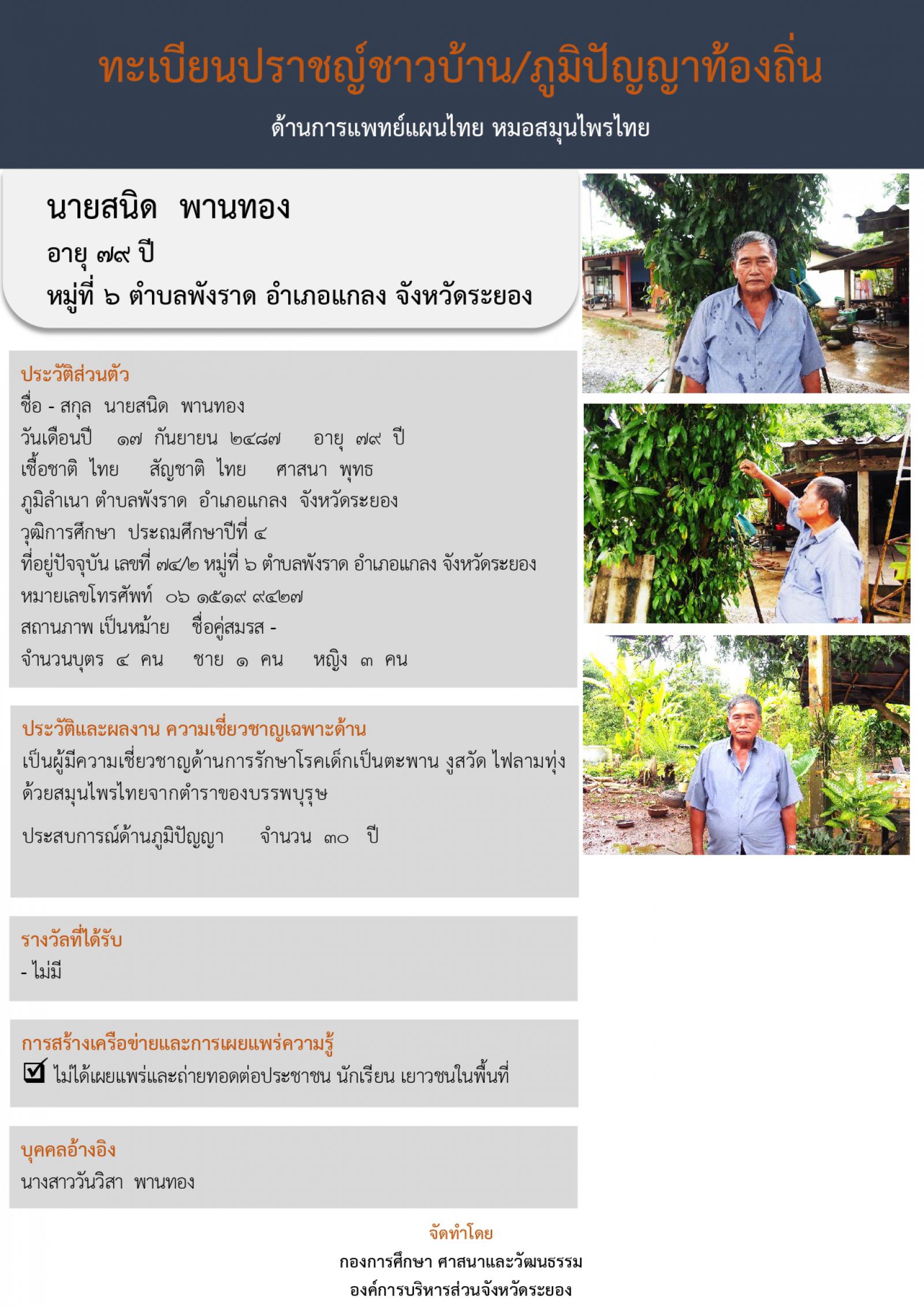 - ทะเบียนปราชญ์ชาวบ้าน/ภูมิปัญญาท้องถิ่น