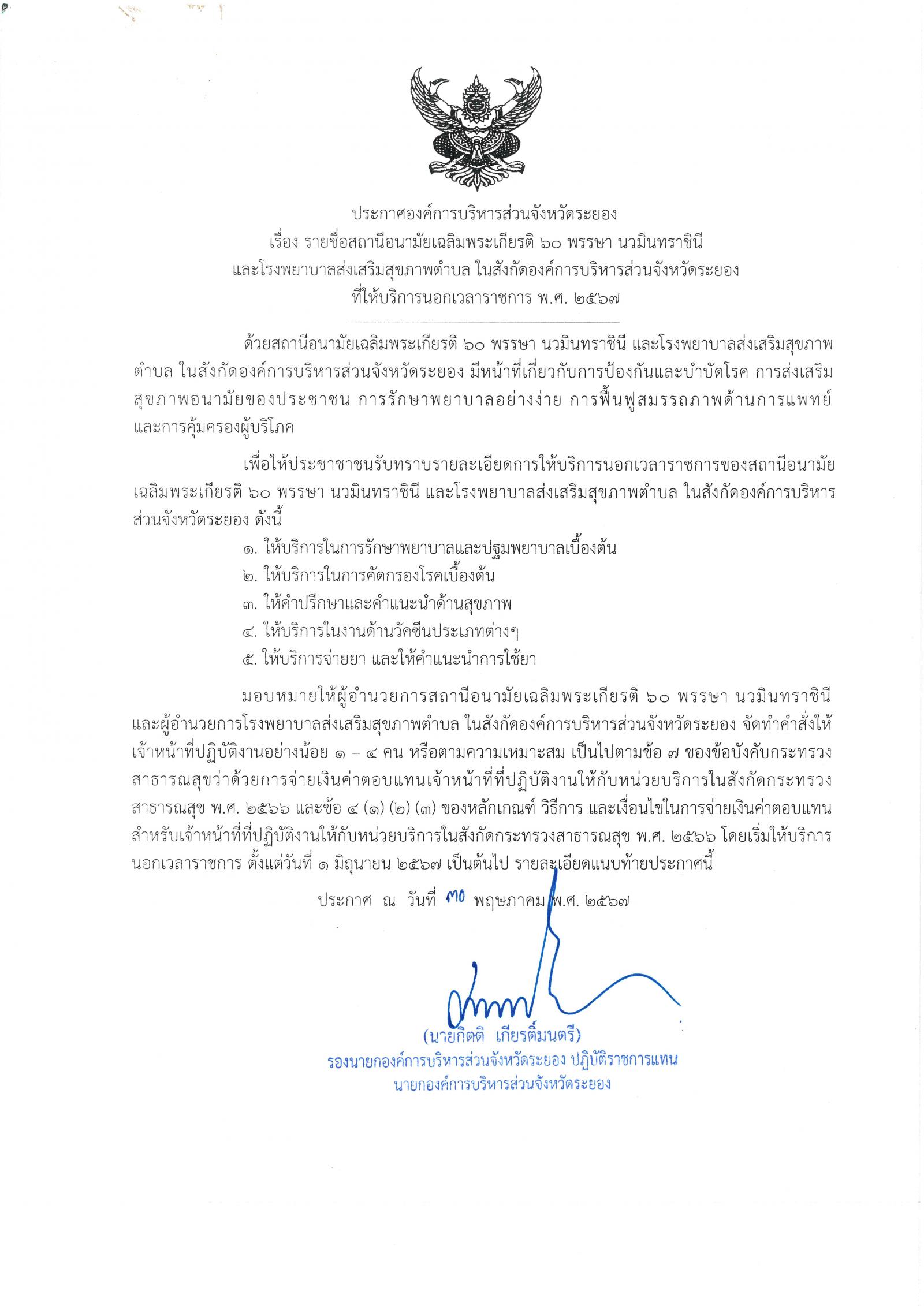 รายชื่อสอน. และรพ.สต. ในสังกัดองค์การบริหารส่วนจังหวัดระยอง ที่ให้บริการนอกเวลาราชการ พ.ศ.2567
