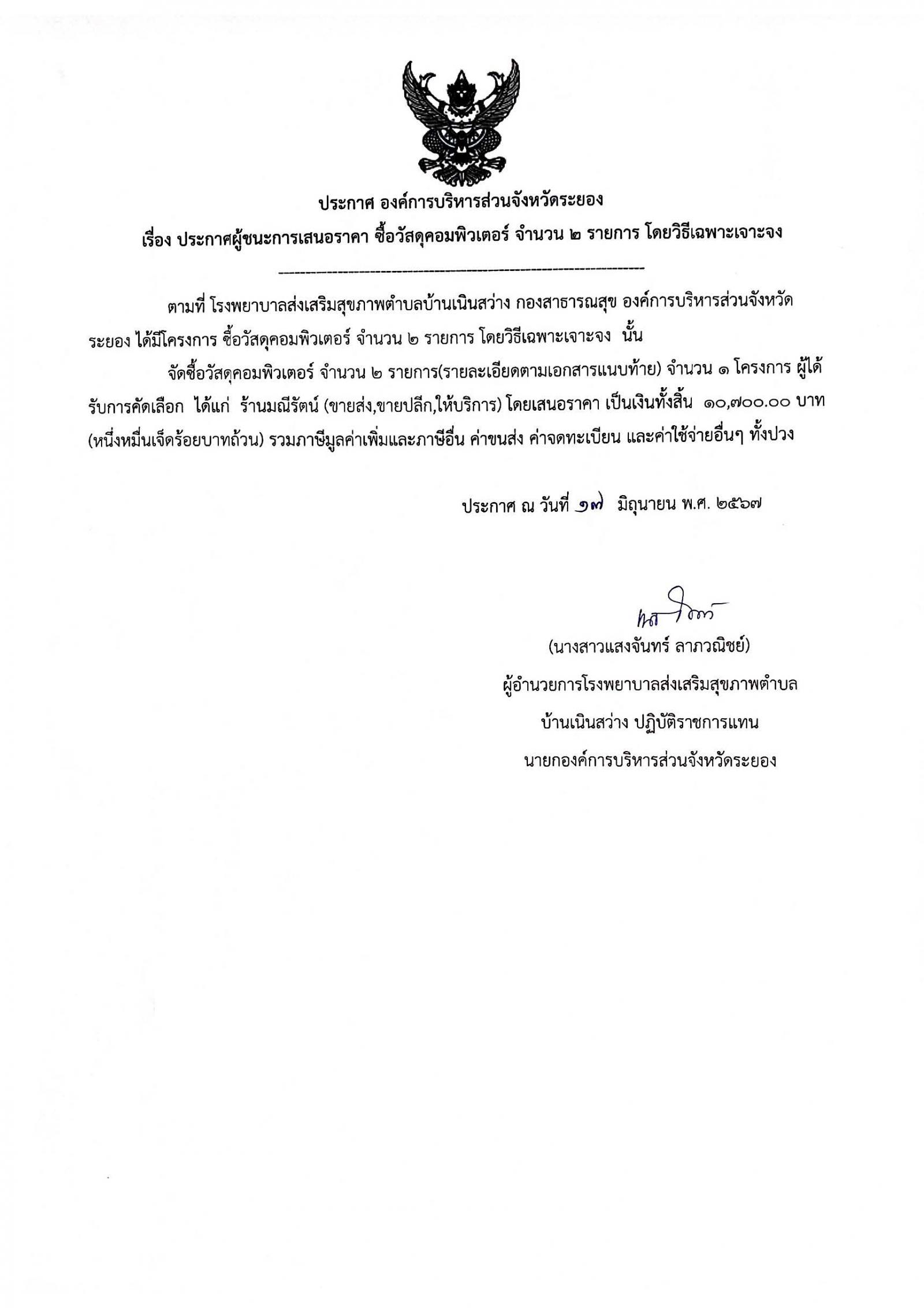 ประกาศผู้ชนะการเสนอราคา ซื้อวัสดุคอมพิวเตอร์ จำนวน 2 รายการ โดยวิธีเฉพาะเจาะจง