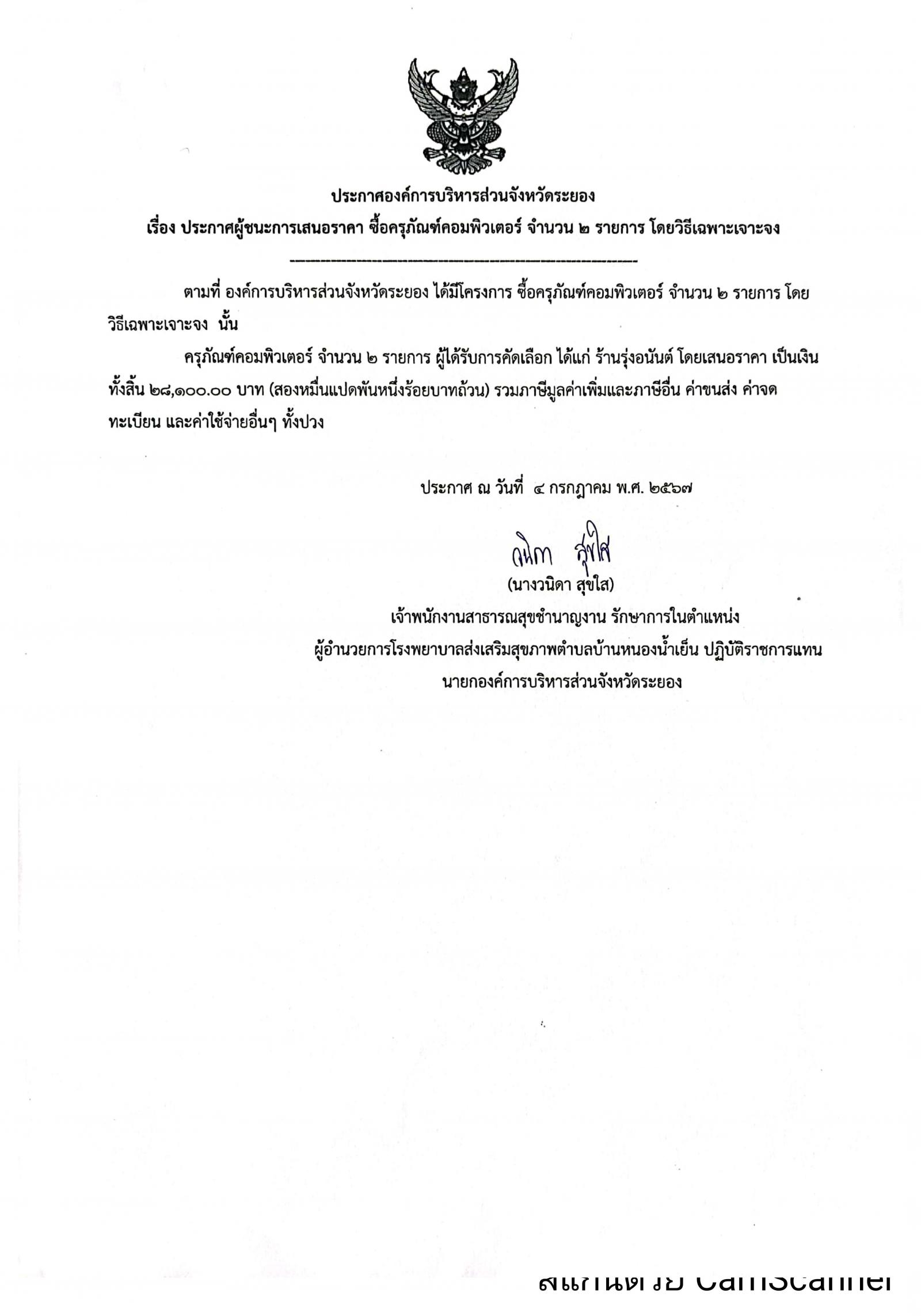 ประกาศผู้ชนะการเสนอราคา ซื้อครุภัณฑ์คอมพิวเตอร์ จำนวน 2 รายการ โดยวิธีการเฉพาะเจาะจง
