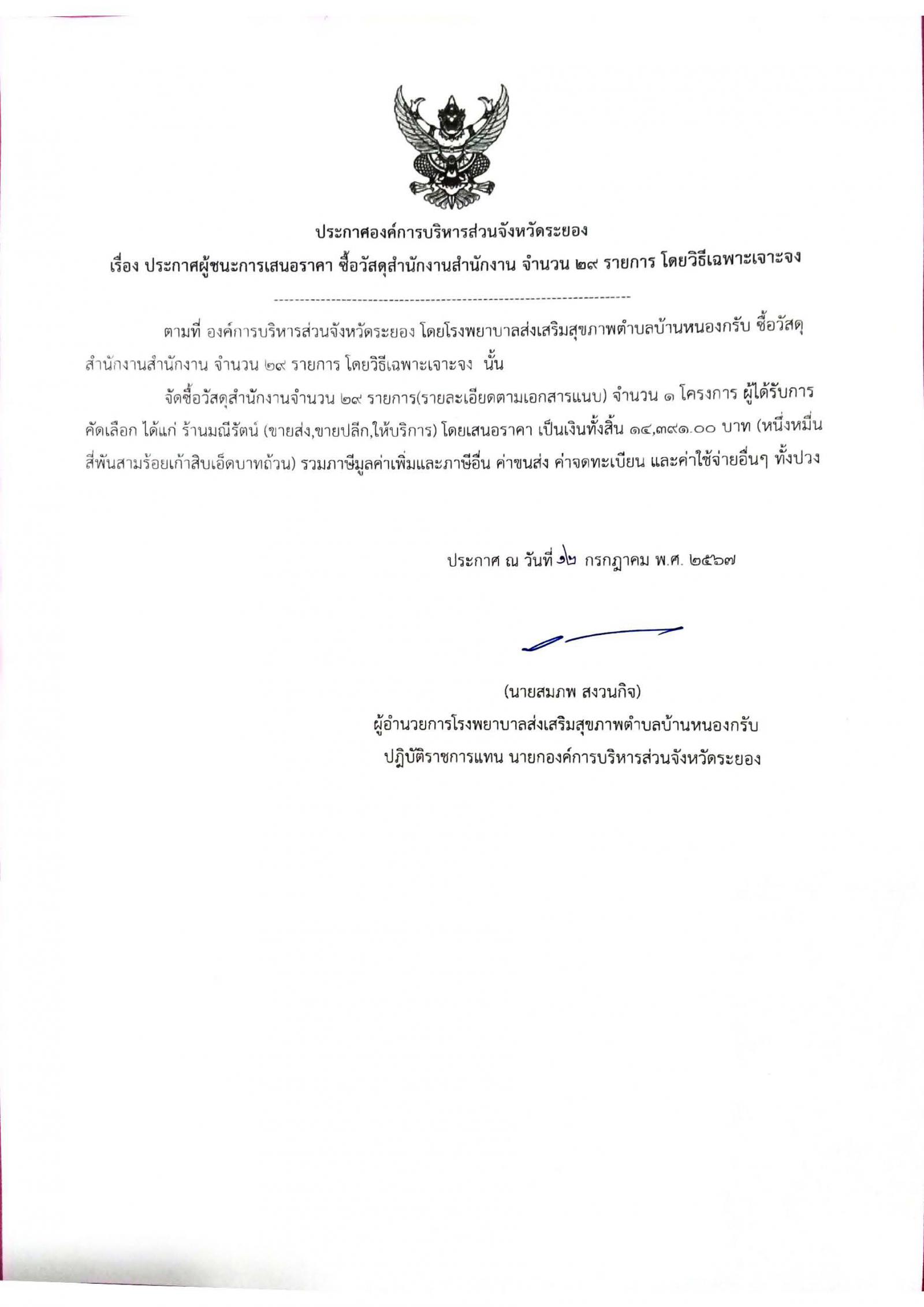 ประกาศผู้ชนะการเสนอราคา ซื้อวัสดุสำนักงาน จำนวน 29 รายการ โดยวิธีเฉพาะเจาะจง