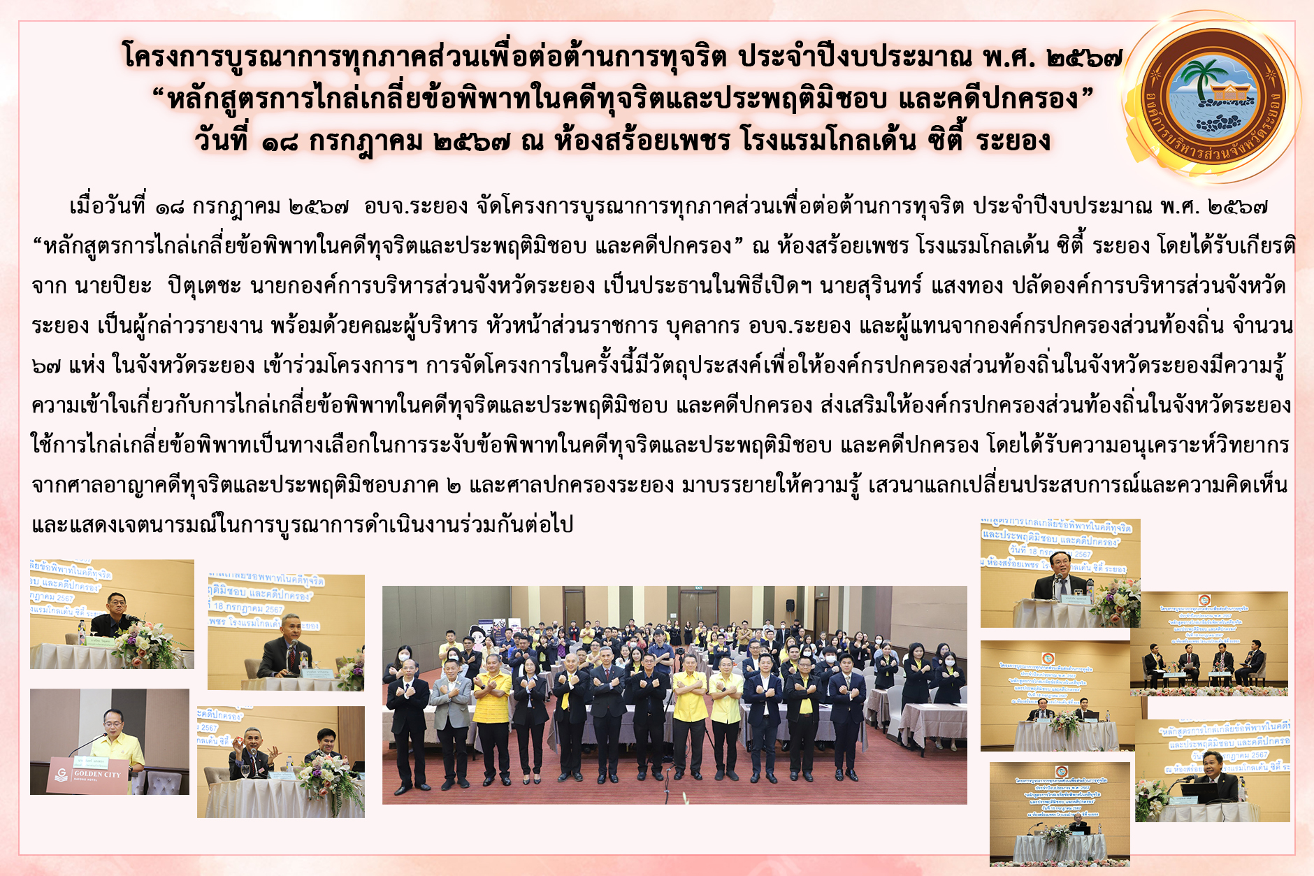 - ศูนย์อบจ.ระยองต้นแบบ ด้านการป้องกันการทุจริต