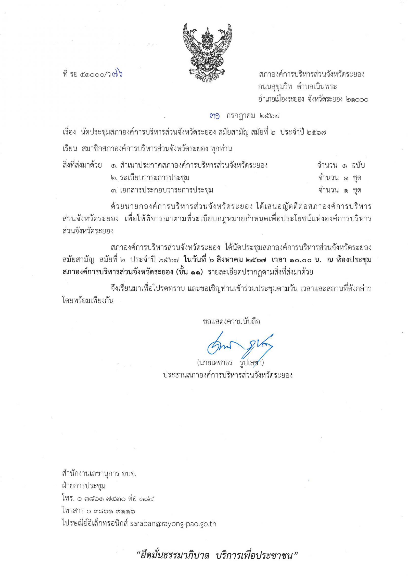 หนังสือนัดประชุมสภาองค์การบริหารส่วนจังหวัดระยอง สมัยสามัญ สมัยที่ 2 ประจำปี 2567.pdf
