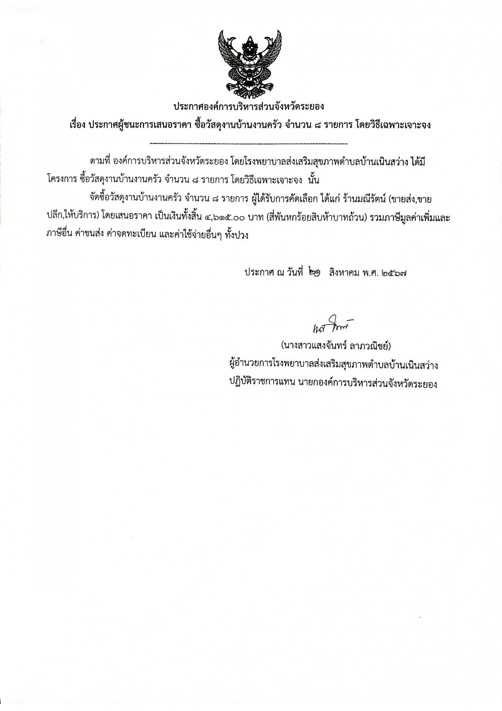 ประกาศผู้ชนะการเสนอราคา ซื้อวัสดุงานบ้านงานครัว จำนวน 8 รายการ โดยวิธีเฉพาะเจาะจง