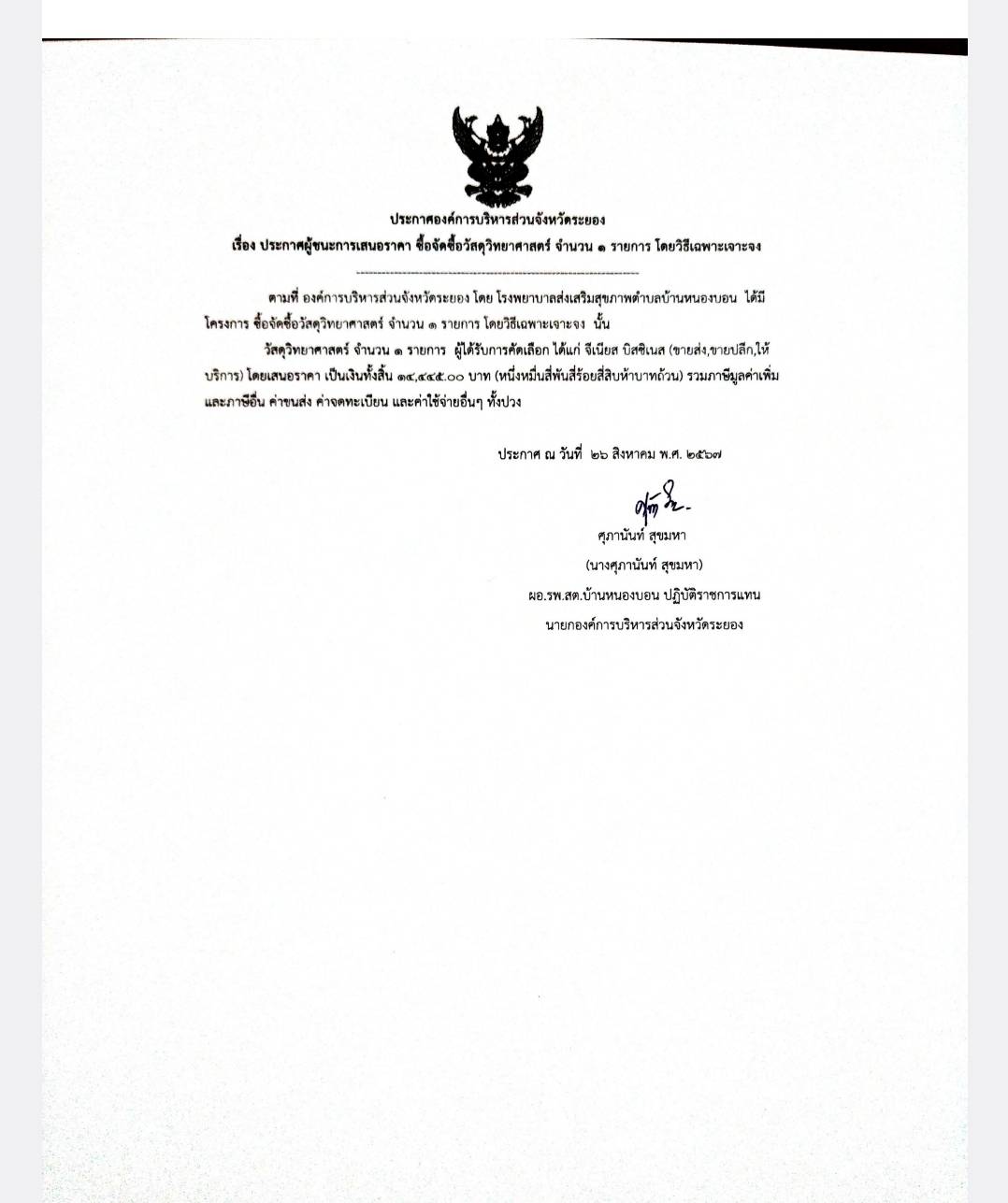 - ประกาศผู้ชนะการเสนอราคาซื้อวัสดุสำนักงาน โดยวิธีเฉพาะเจาะจง