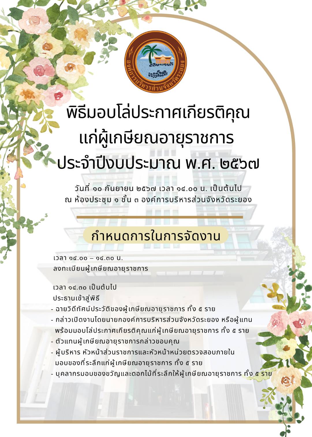 พิธีมอบโล่ประกาศเกียรติคุณแก่ผู้เกษียณอายุราชการ ประจำปีงบประมาณ พ.ศ. 2567