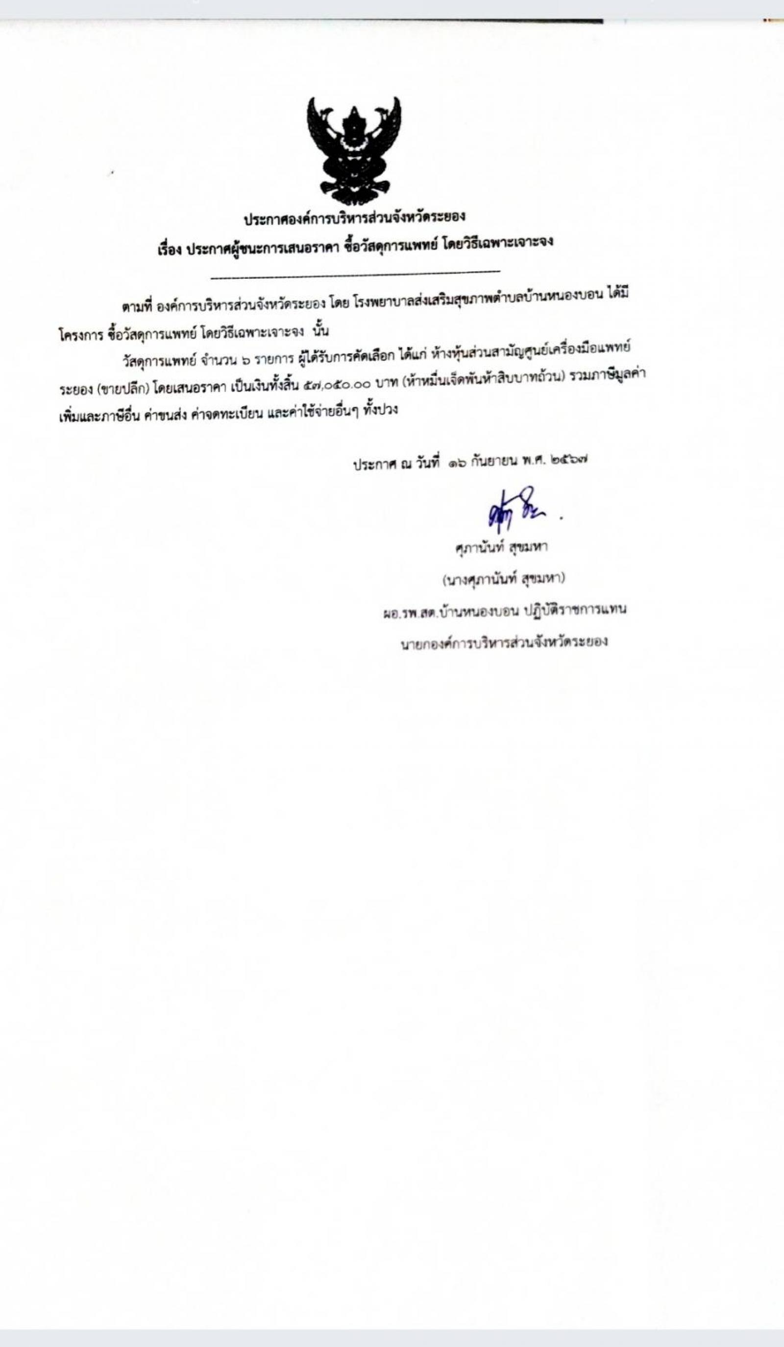 ประกาศ แผนใช้จ่ายเงินบำรุง โรงพยาบาลส่งเสริมสุขภาพตำบลบนหนองบอน