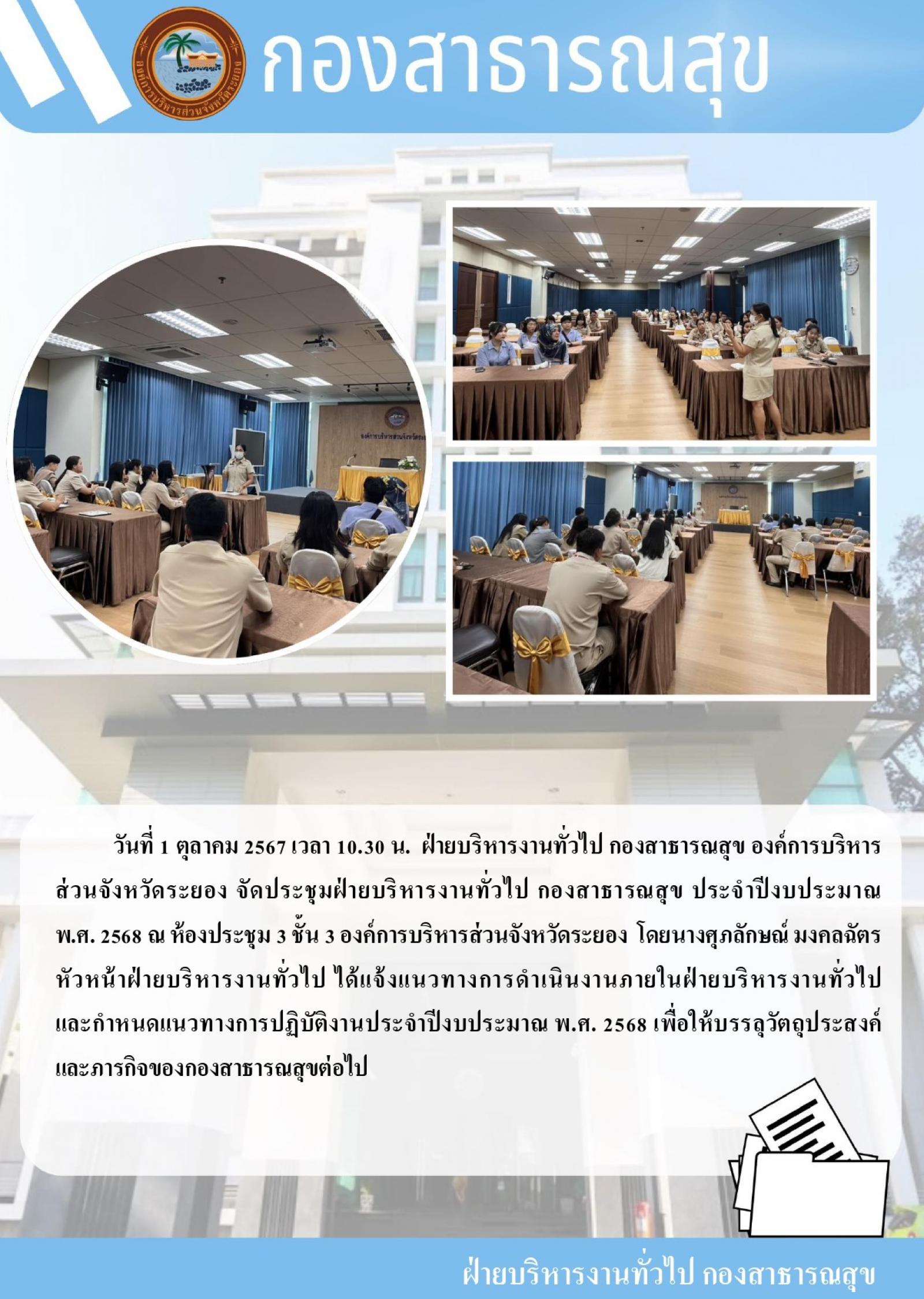 ฝ่ายบริหารงานทั่วไป กองสาธารณสุข จัดประชุมฝ้ายบริหารงานทั่วไป กองสาธารณสุข ประจำปีงบประมาณ พ.ศ. 2568