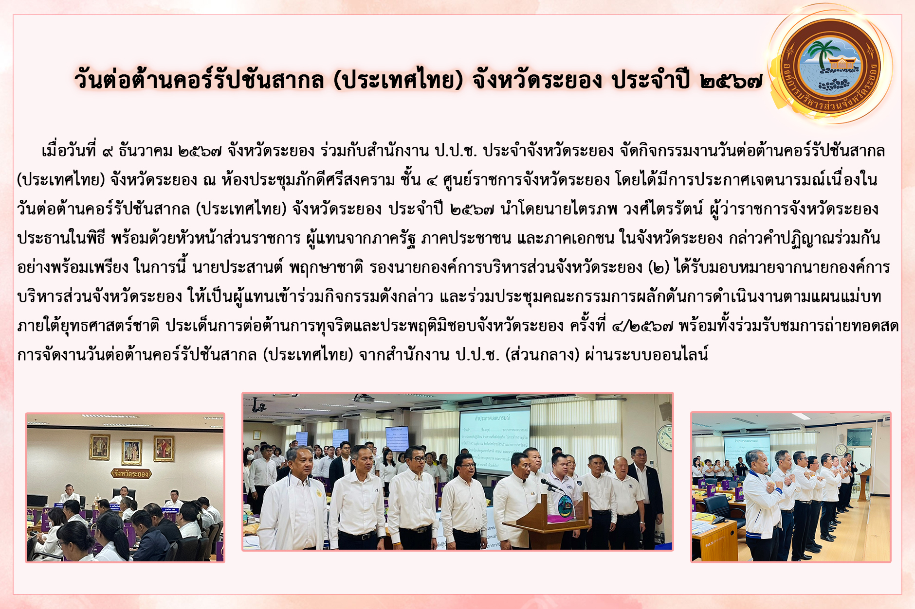 กิจกรรมงานวันต่อต้านคอร์รัปชันสากล (ประเทศไทย) จังหวัดระยอง ประจำปี 2567