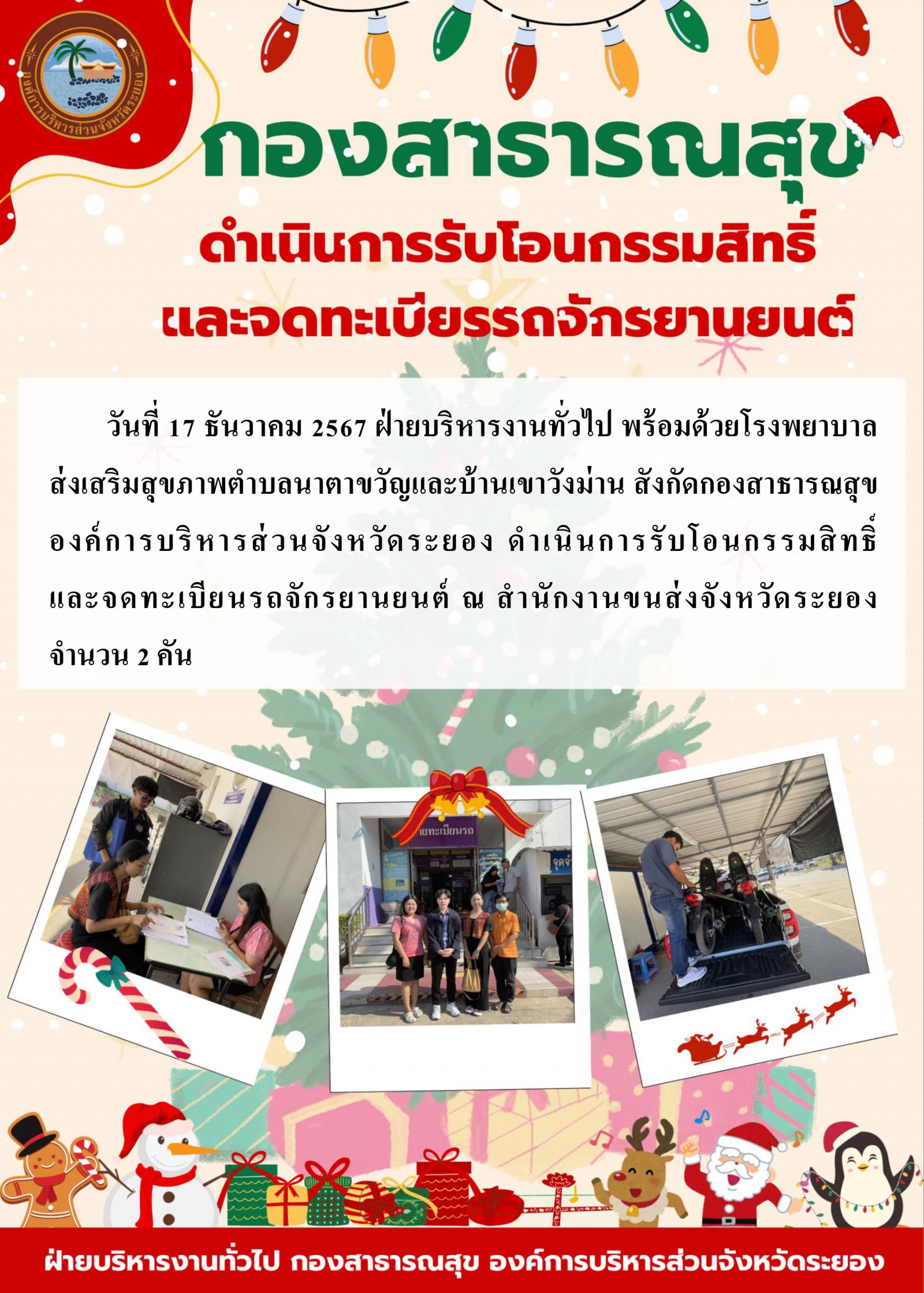 กองสาธารณสุข ดำเนินการรับโอนกรรมสิทธิ์ และจดทะเบียรรถจักรยานยนต์