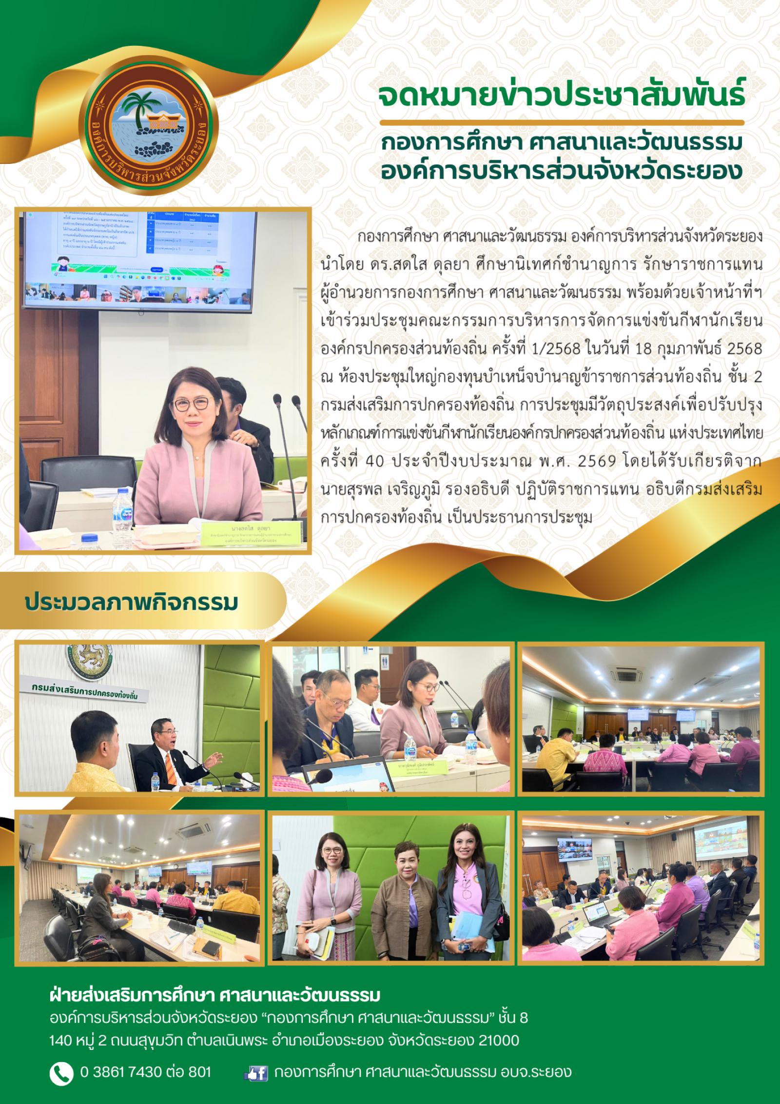 การประชุมคณะกรรมการบริหารการจัดการแข่งขันกีฬานักเรียนองค์กรปกครองส่วนท้องถิ่น ครั้งที่ 1/2568