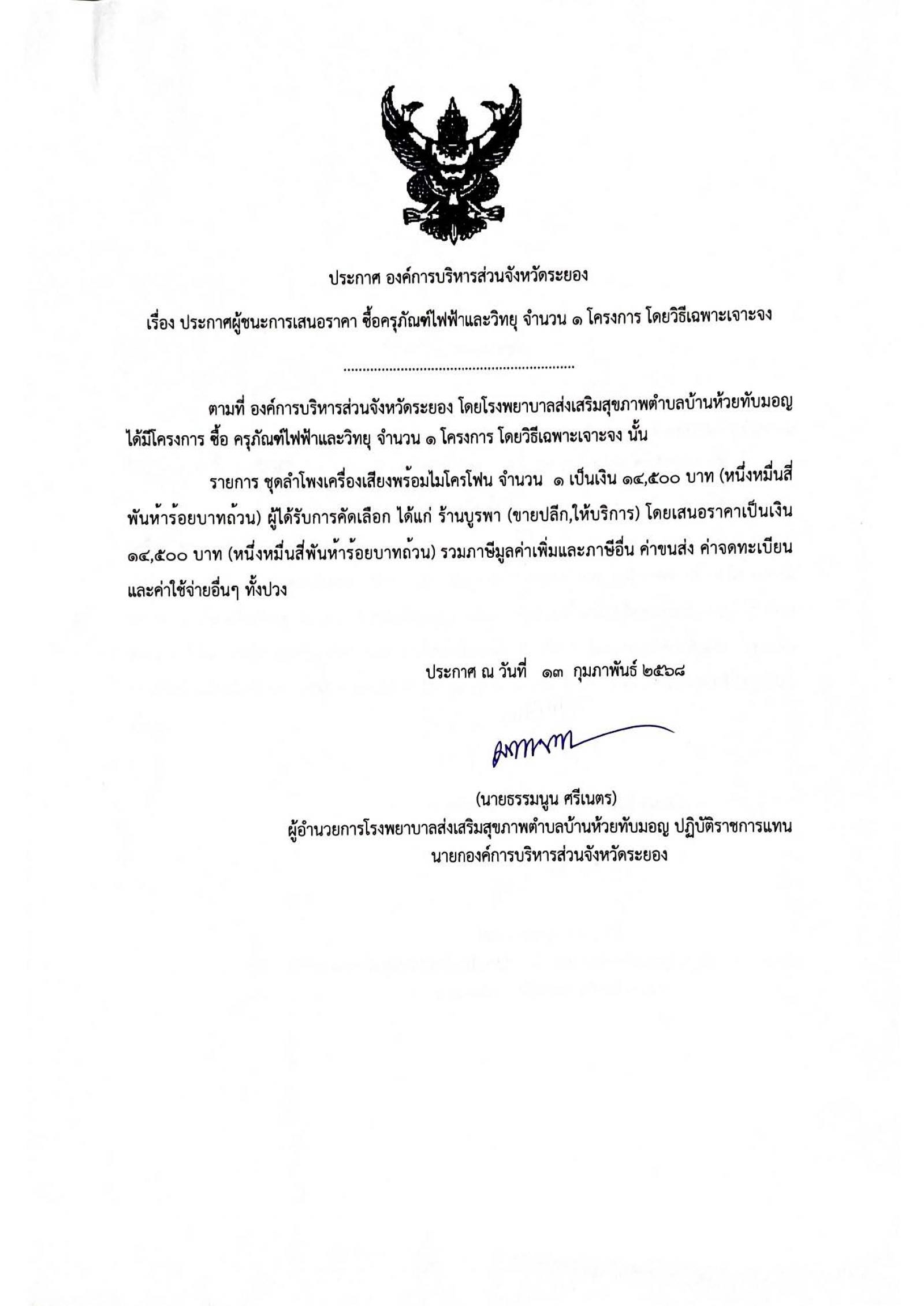 ประกาศผู้ชนะการเสนอราคา ซื้อครุภัณฑ์ไฟฟ้าและวิทยุ จำนวน 1 โครงการ โดยวิธีเฉพาะเจาะจง