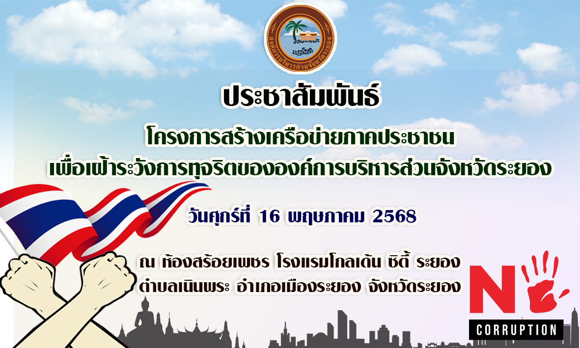 ได้จัดทำโครงการสร้างเครือข่ายภาคประชาชน เพื่อเฝ้าระวังการทุจริตขององค์การบริหารส่วนจังหวัดระยอง