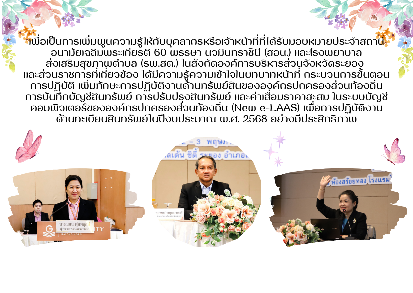 “หลักสูตร เทคนิคการบริหารพัสดุและแนวทางการปฏิบัติงานทะเบียนสินทรัพย์ของหน่วยงานภายใต้สังกัดองค์กรปกครองส่วนท้องถิ่นในระบบบัญชีคอมพิวเตอร์ขององค์กรปกครองส่วนท้องถิ่น (New e-LAAS) ปีงบประมาณ พ.ศ. 2568
