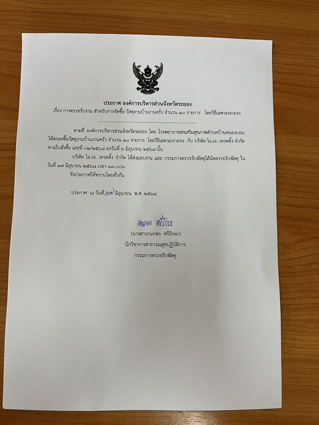 ประกาศ เรื่อง การตรวจรับงาน สำหรับการจัดซื้อ วัสดุงานบ้านงานครัว จำนวน 10 รายการ โดยวิธีเฉพาะเจาะจง