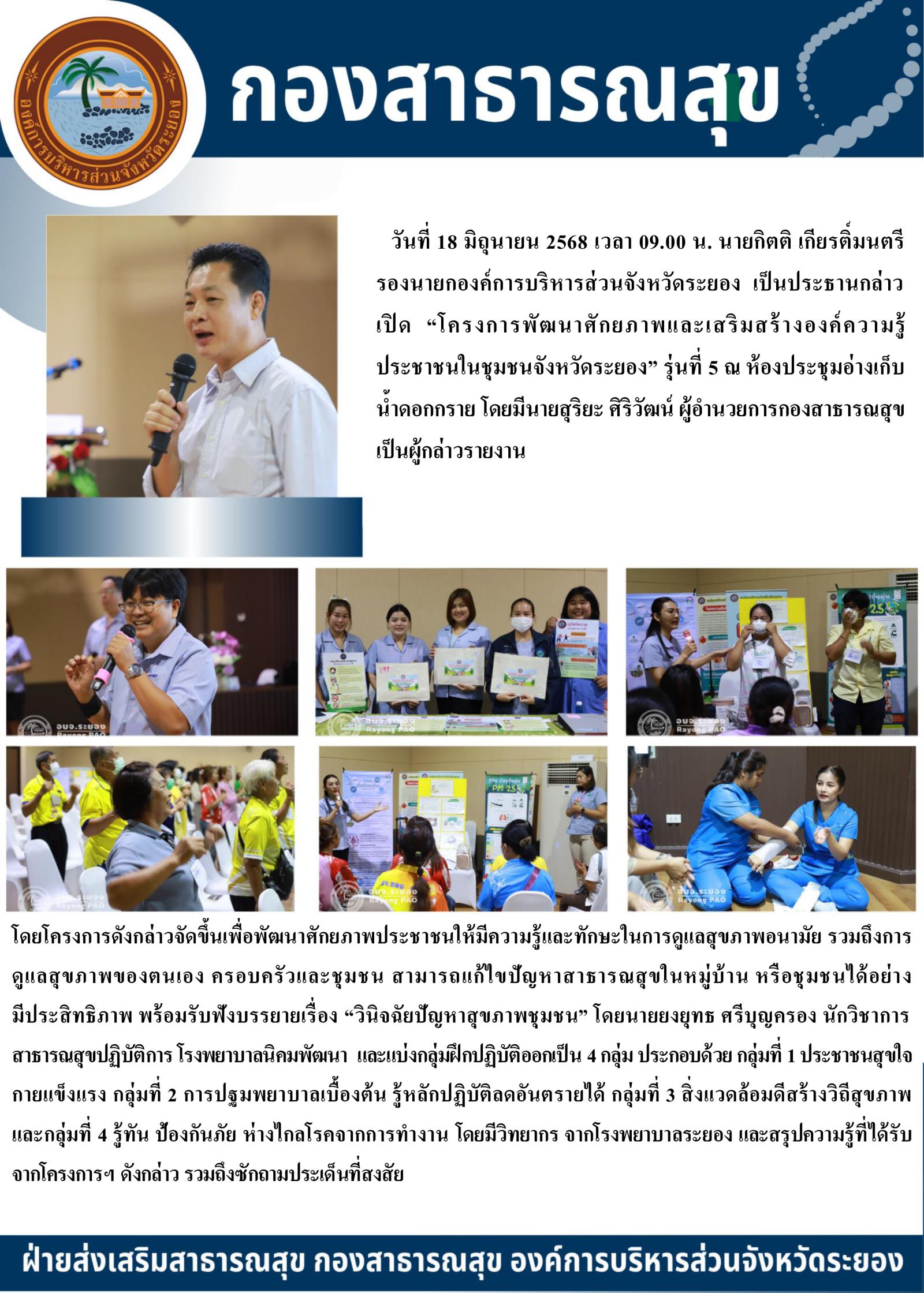 โครงการพัฒนาศักยภาพและเสริมสร้างองค์ความรู้ประชาชนในชุมชนจังหวัดระยอง รุ่นที่ 5 อ.ปลวกแดง
