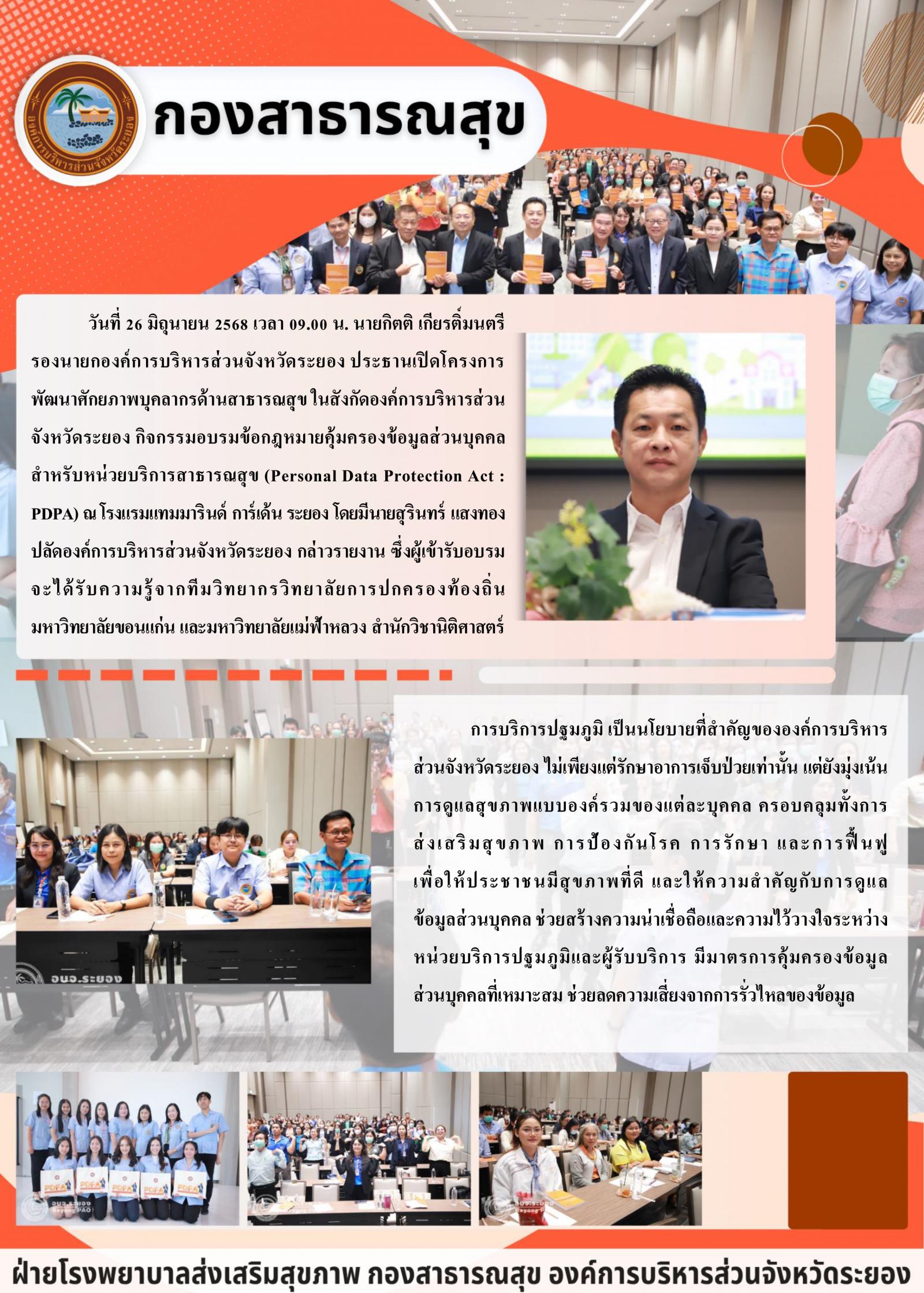 โครงการพัฒนาศักยภาพบุคลากรด้านสาธารณสุข กิจกรรมอบรมข้อกฎหมายคุ้มครองข้อมูลส่วนบุคคลสำหรับหน่วยบริการสาธารณสุข (Personal Data Protection Act : PDPA)