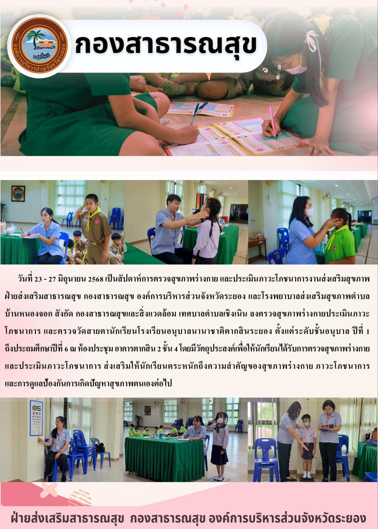 การตรวจสุขภาพร่างกาย และประเมินภาวะโภชนาการของนักเรียน โรงเรียนอนุบาลนานาชาติตากสินระยอง
