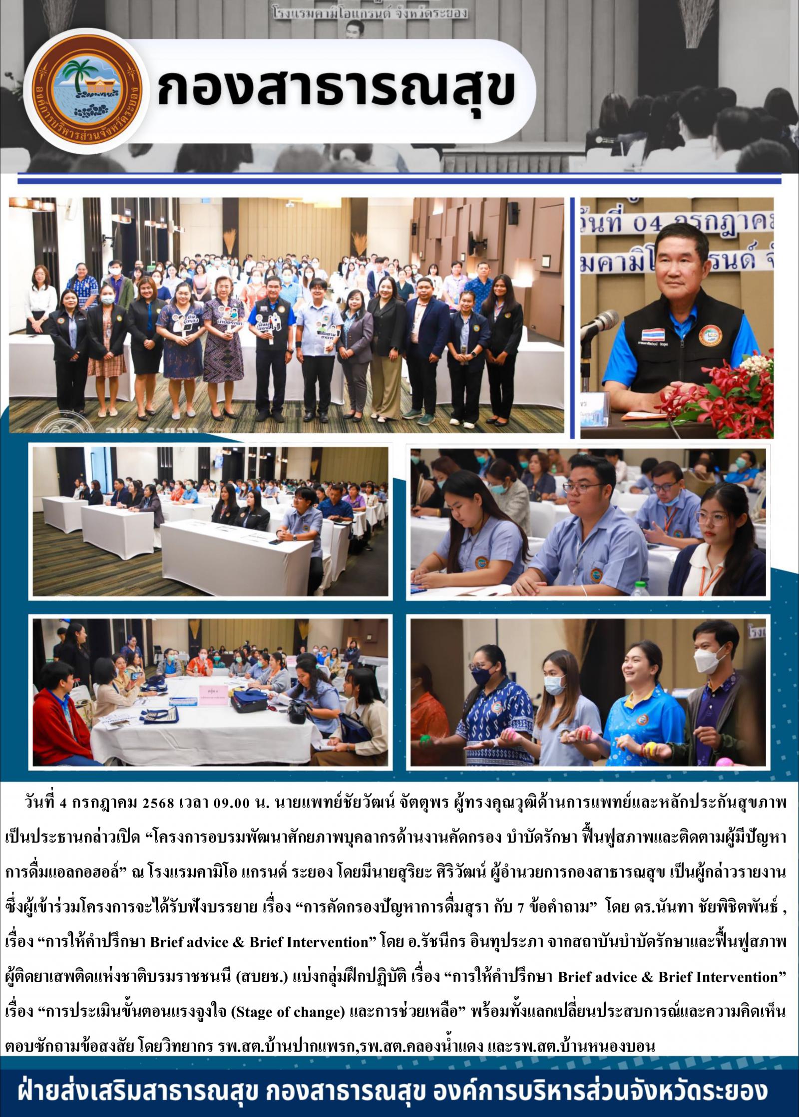 โครงการอบรมพัฒนาศักยภาพบุคลากรด้านงานคัดกรอง บำบัดรักษา ฟื้นฟูสภาพและติดตามผู้มีปัญหาการดื่มแอลกอฮอล์