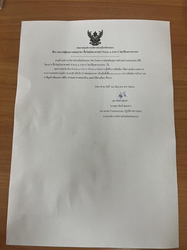 ประกาศผู้ชนะการเสนอราคา ซื้อวัสดุวิทยาศาสตร์ จำนวน 1 รายการ โดยวิธีเฉพาะเจาะจง