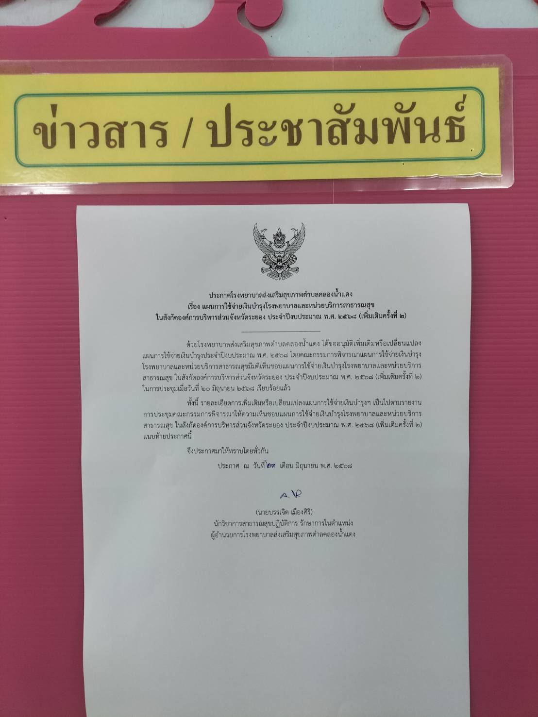 ประกาศใช้แผนการใช้จ่ายเงินบำรุงของโรงพยาบาลส่งเสริมสุขภาพตำบลคลองน้ำแดง ประจำปีงบประมาณ พ.ศ.258 (เพิ่มเติมครั้งที่ 2)
