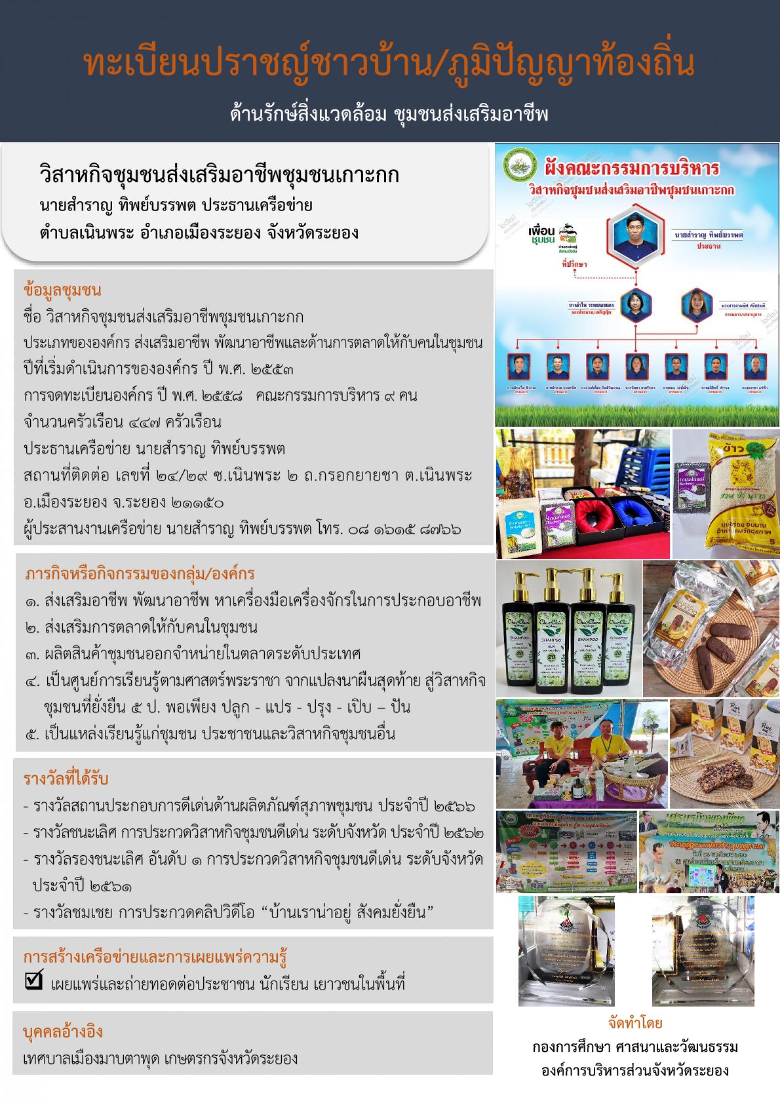 - ทะเบียนปราชญ์ชาวบ้าน/ภูมิปัญญาท้องถิ่น