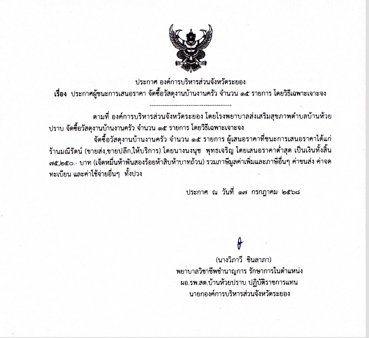 ประกาศ ณ วันที่ 17 กรกฎาคม 2568