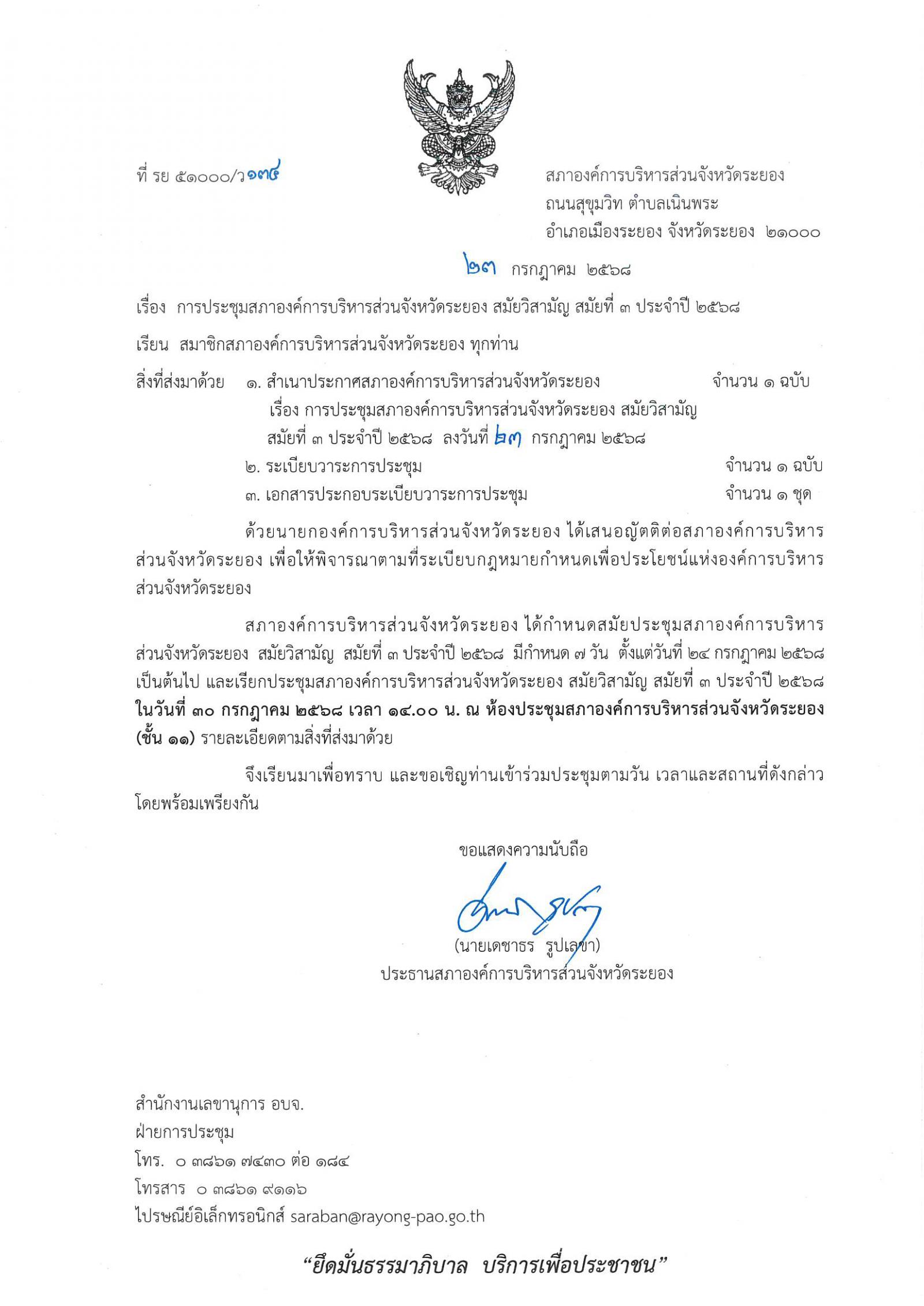 ประชุมสภาองค์การบริหารส่วนจังหวัดระยอง สมัยวิสามัญ สมัยที่ ๓ ประจำปี ๒๕๖๘